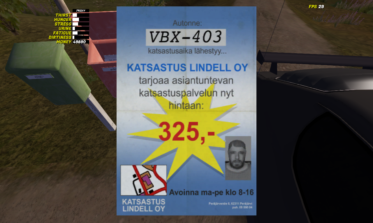 По характеристикам я не замерял, но судя по гоночному карбюратору и другим красотам, в ней около 170 лошадиных сил. Набирает она 215 км/ч. Также отправлена заявка на покупку персонального компьютера. Из дисков в Satsuma стоят литые на резине "Sutasiko", которые практически в новом состоянии. Состояние кузова идеальное, не топил 200+, передаточное число 3,700.