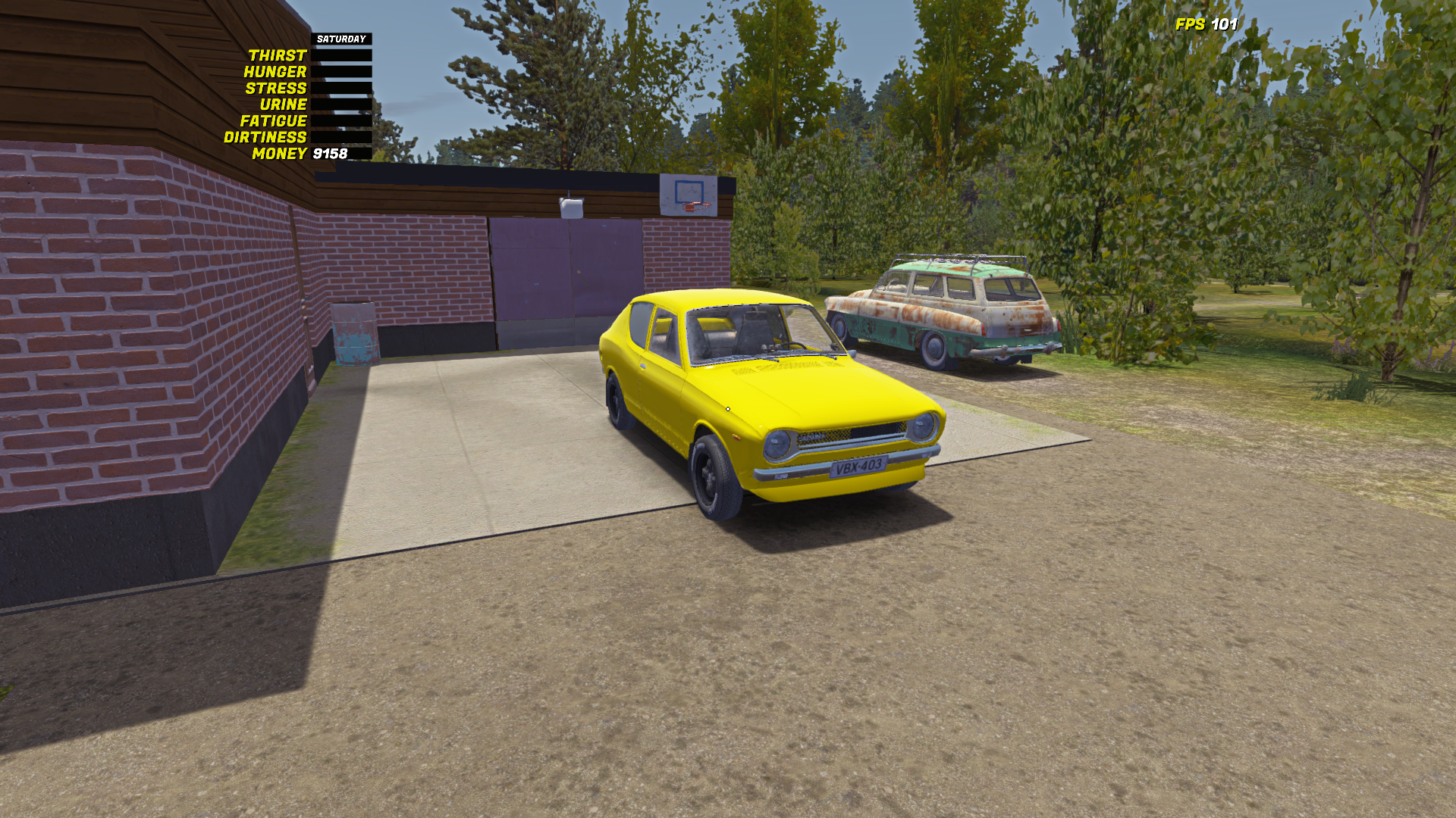 Сохранение для My Summer Car. Брага пока еще не готова. Проверьте сами: если она булькает, значит, стоит подождать. Сено уже доставлено, как и комбайн. Наручных часов к сожалению нет. Номера получены. Машина настроена и успешно стоит на учёте. Также куплены набор головок с трещоткой и датчик смеси. На балансе около 11к.