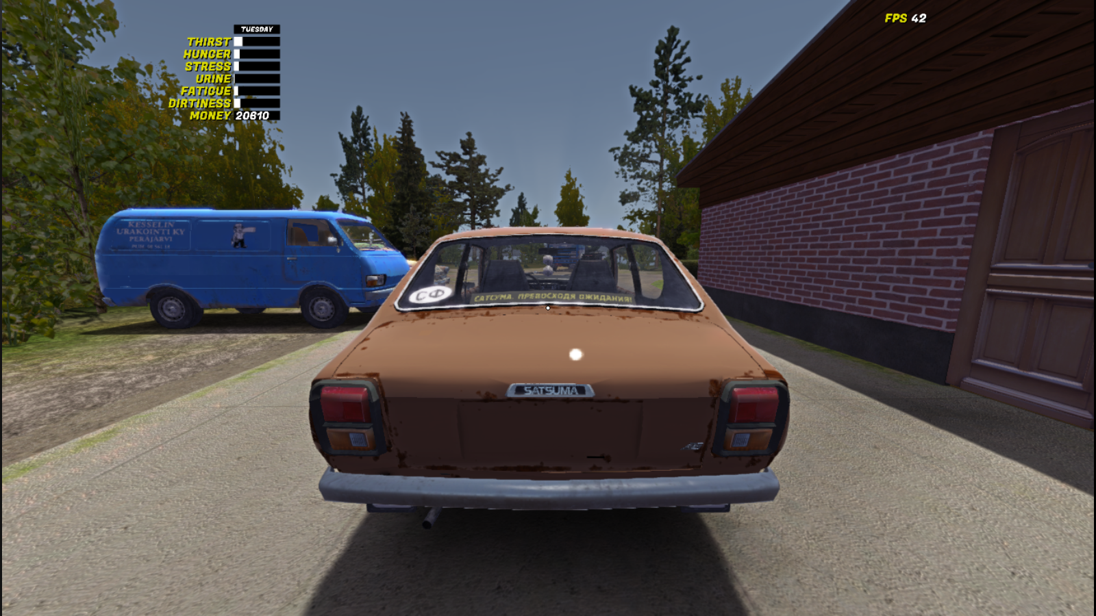В этом сохранение вас ждет стоковая сатсума, ключи от бусика и ассенизатора, 20 тысяч марок, полной еды в холодильнике, несколько ящиков пива, сюжет не тронут.