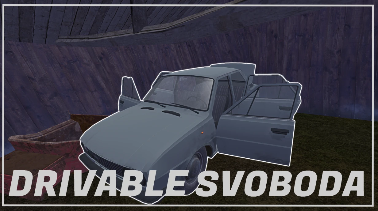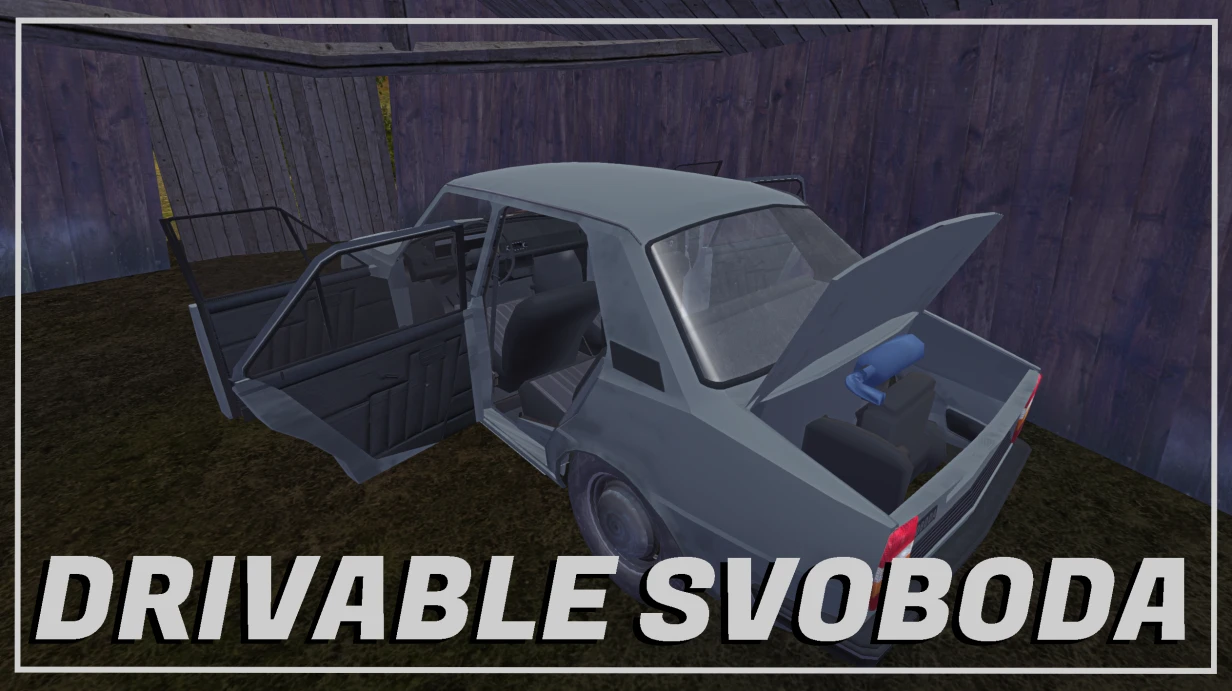 Это ремейк старого мода Drivable Svoboda. Автомобиль с заднемоторной компоновкой и заднеприводный. Машину перед запуском нужно собрать. Саму машину можно найти в заброшенном сарае у ж/д путей проезжая бабушку. Есть возможность изменить цвет машины и текстуру салона.