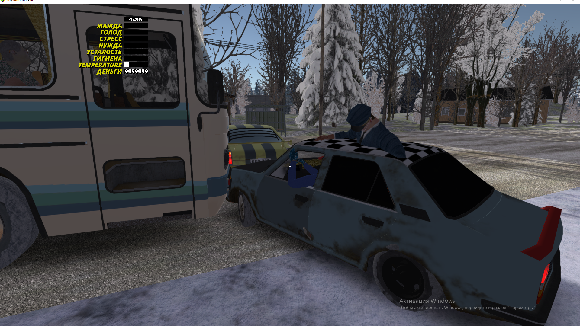 прогрей машину до середины.