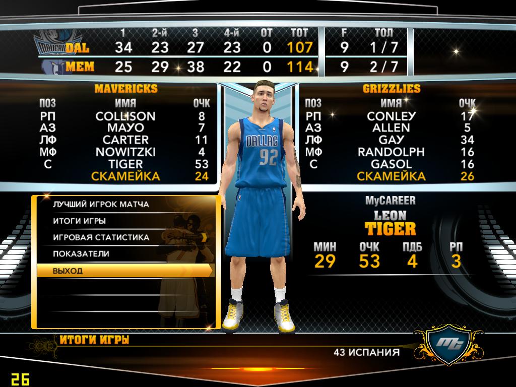 Знаешь, я играю на последнем уровне сложности, где у соперника больше 50% бросков залетает, следовательно отскоков меньше! Играл бы я "профи" легко бы по 10 отскоков собирал. Если ты за НБА следишь то у того же Ховарда не всегда 10 и более поборов за матч. В матче против Мемфиса (кстати!) он за 39 минут всего 4 подбора и это не единичный случай. А ты усмехаешься моим 4 подборам за 29 минут. Лучше вместо того чтобы ухмыляться свои успехи бы предъявил (в картинках).