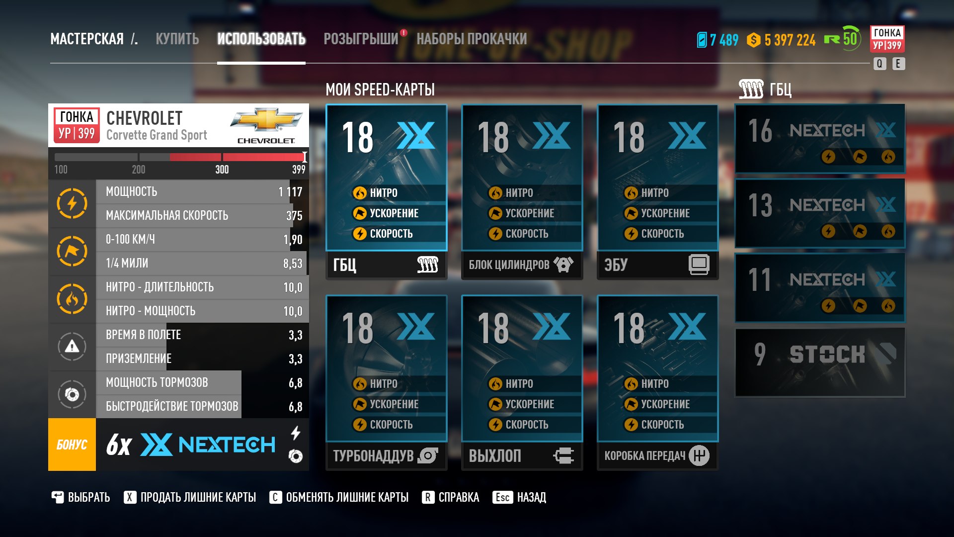 И да, заметьте, у меня на скрине, все шесть карт имеют по три бонуса в каждой, это я и считал полной прокачкой.