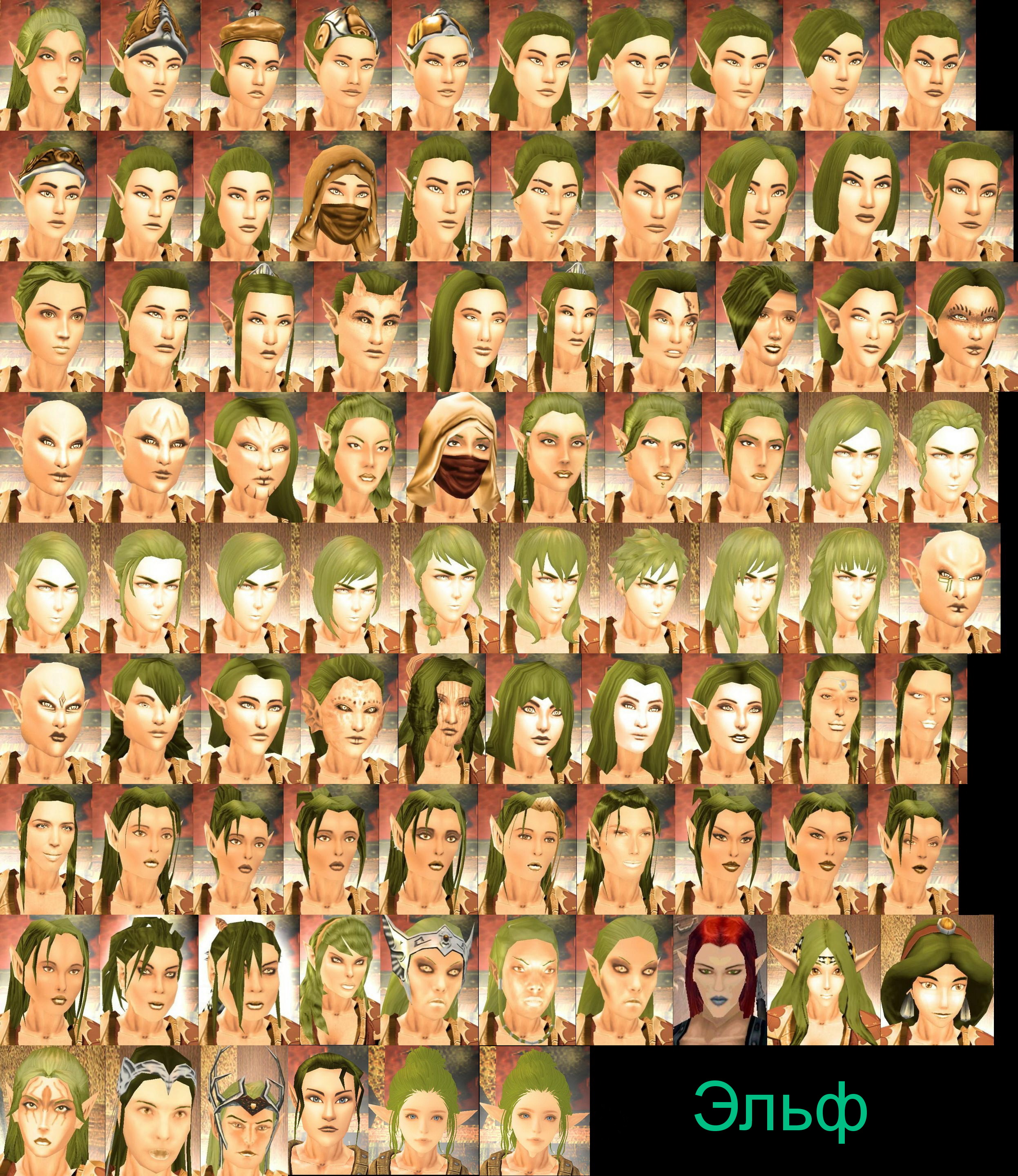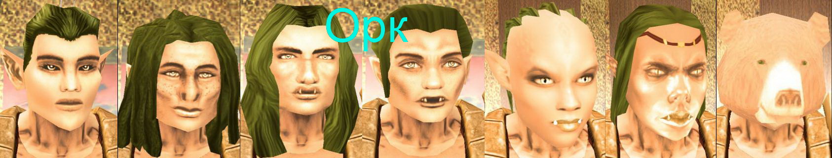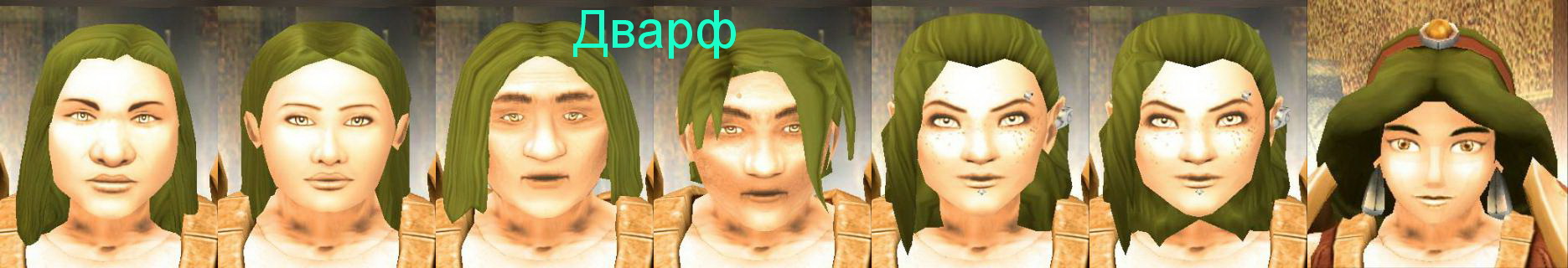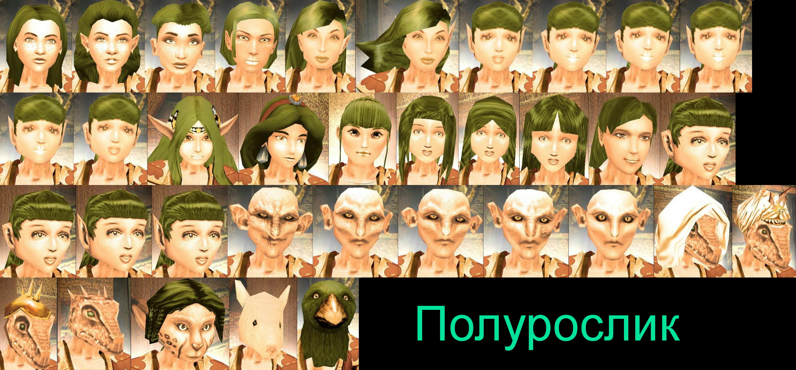 Для каждой расы сделан отдельный архив, название которого начинается как "Heads_f_" и заканчивается на букву "A" (полурослик), "D" (дварф), "E" (эльф), "G" (гном), "H" (человек), "O" (орк). Так, например, архив "Heads_f_H.zip" сделан для расы "человек". Далее вместо "A", "D", "E", "G", "H" и "O" в названии архива буду писать "?".