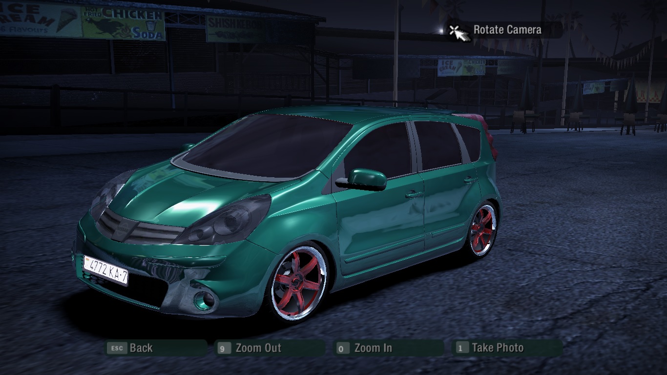 Nissan Note заменяющий Ford Mustang GT. Этот мод предназначен для аркадной версии игры Need for Speed Carbon, но его можно также установить на обычную версию, NFSCO или Battle Royale.