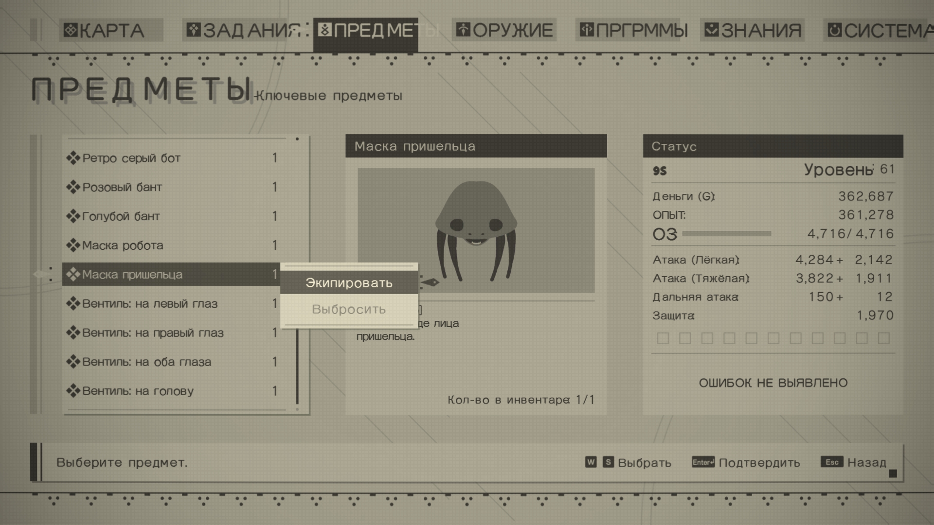 А экипировать предметы,заходишь во вкладку ключевые предметы,и там уже некоторые (во второй половине списка) можно экипировать.