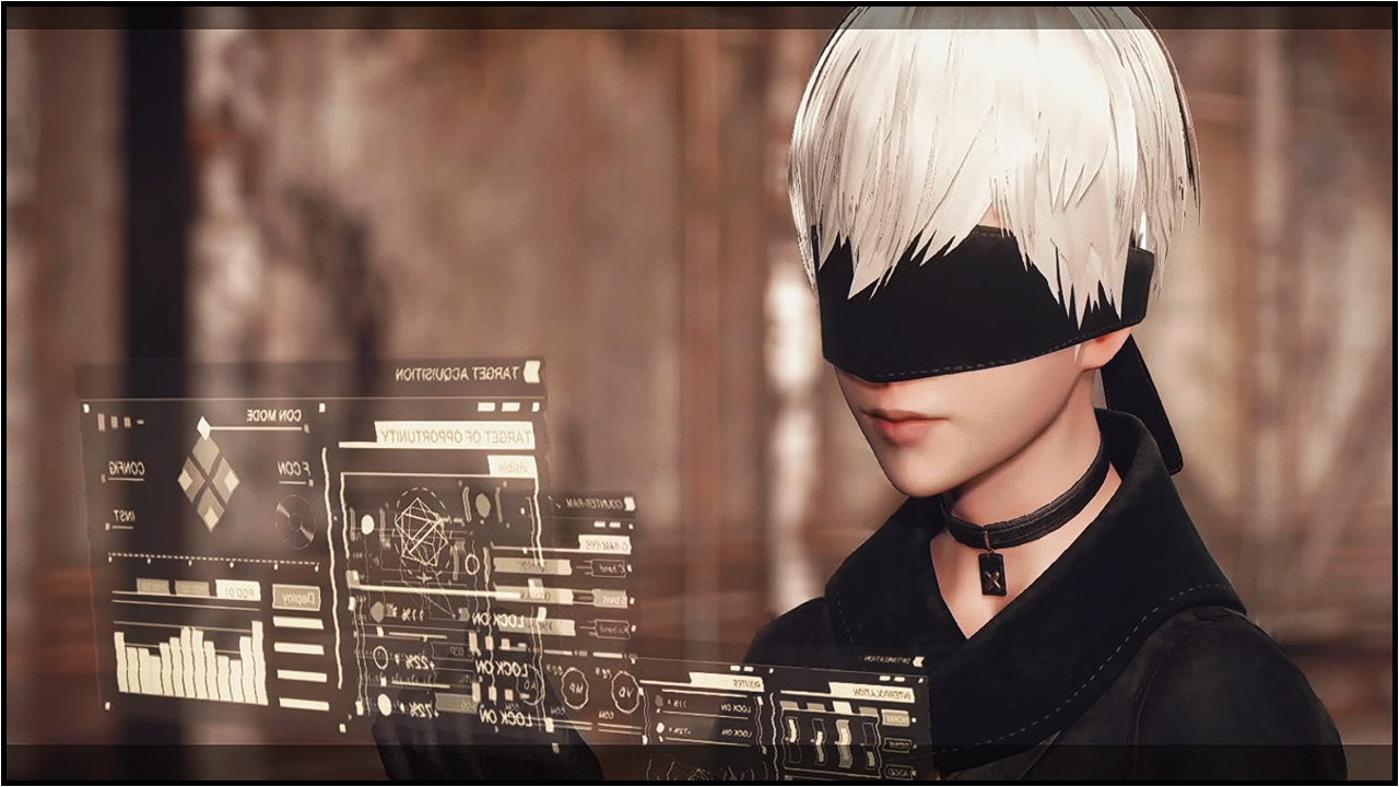 9S (НайнЭс) – андроид YoRHa. Специализирующийся больше на разведке, чем на бое, обладает веселым характером, любит поболтать и, в отличие от напарницы, понарушать правила. По-человечески привязан к 2В. С открытием правды об истинном положении вещей начинает медленно сходить с ума.