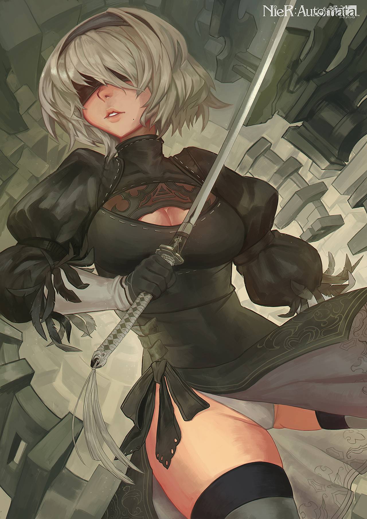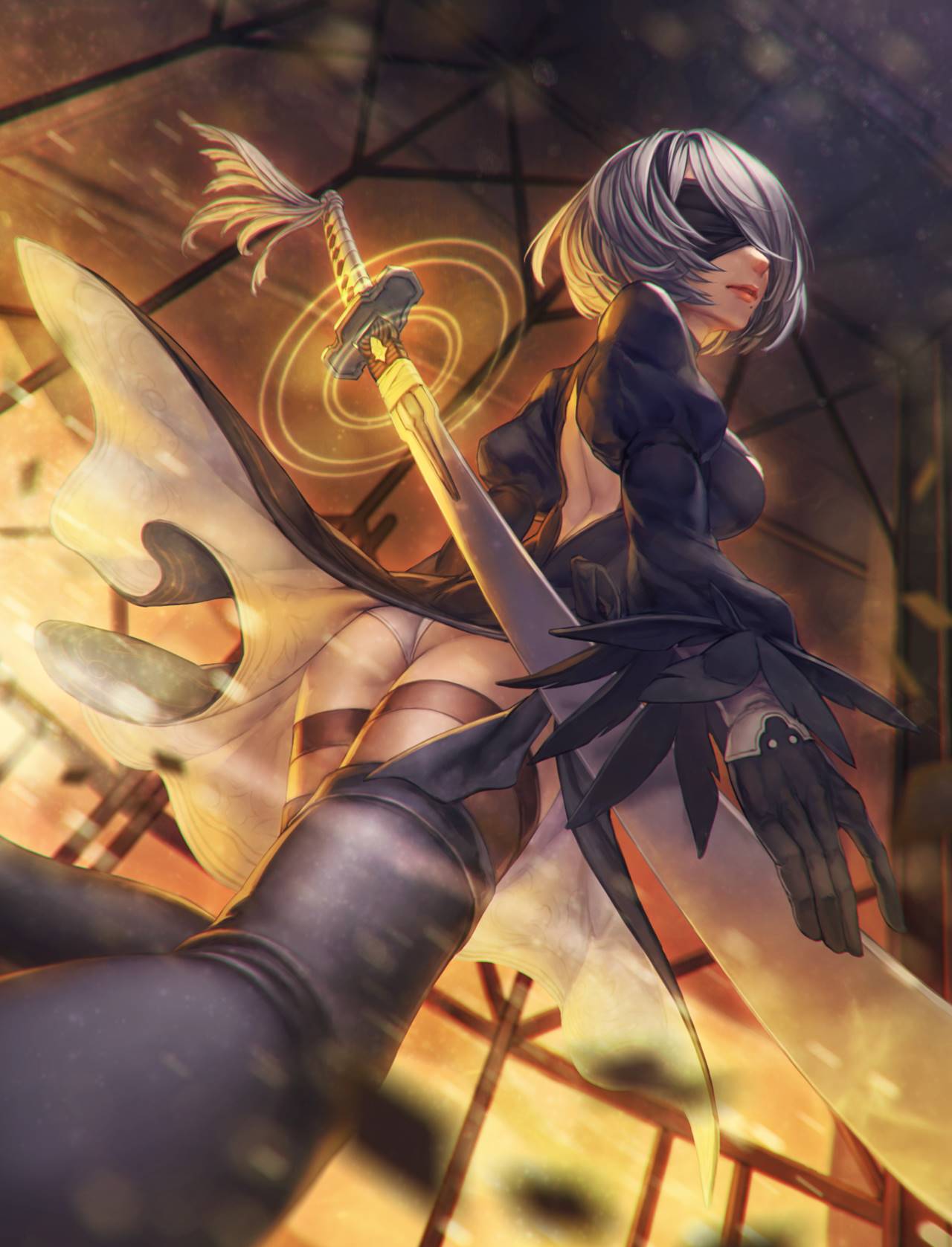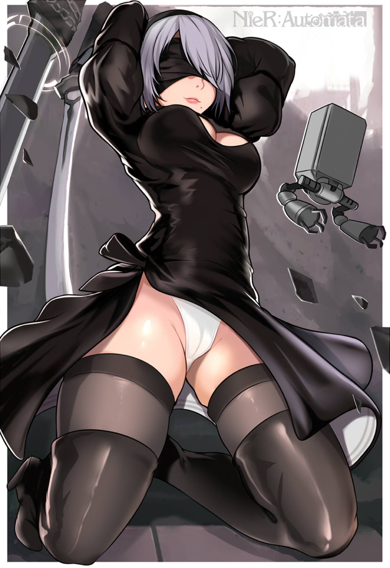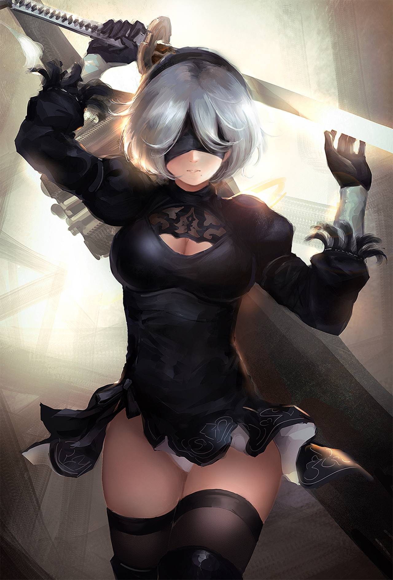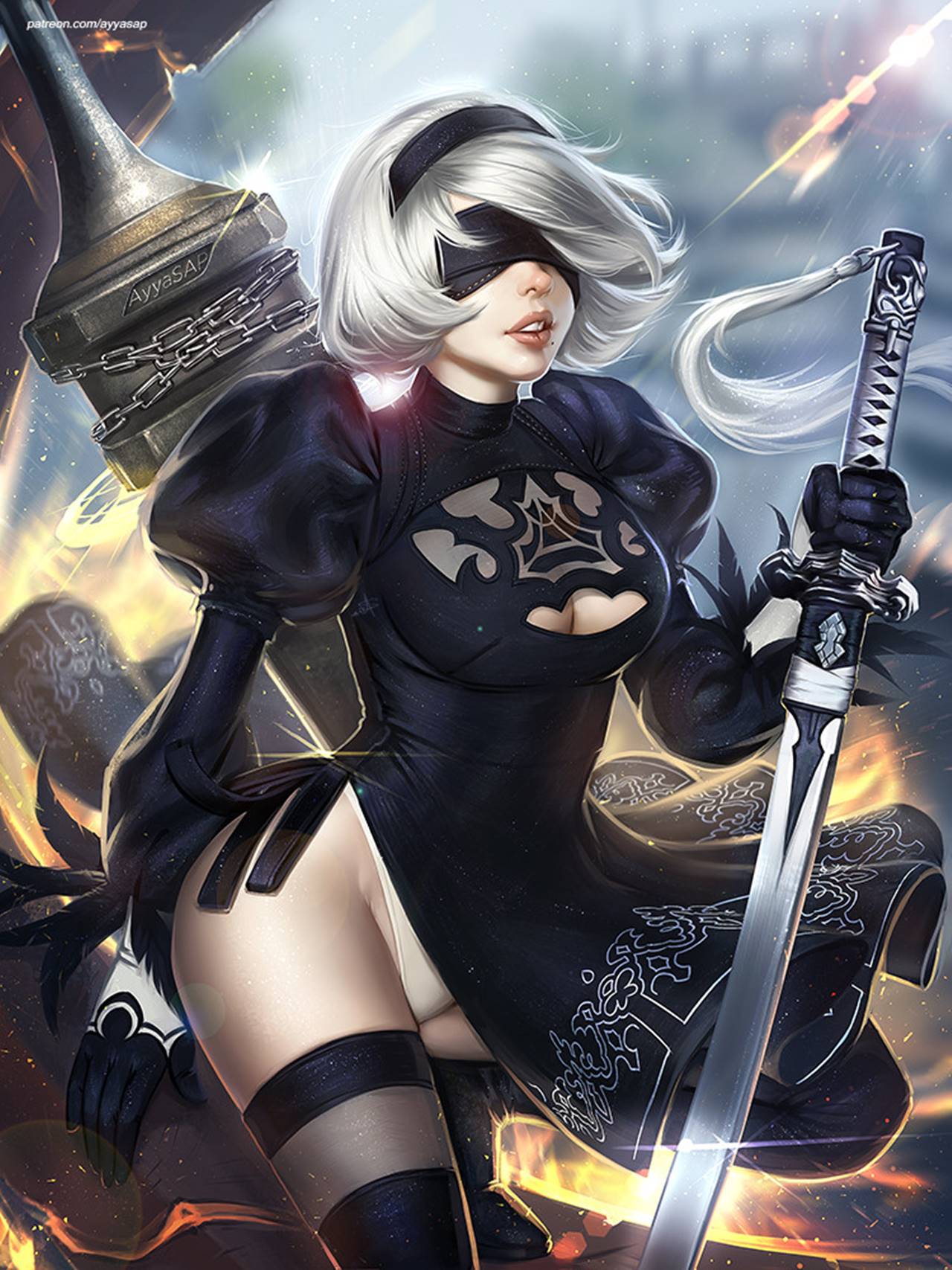 Очаровательная девушка-андроид 2B — это мокрый сон для любителей кавайных девушек в провокационных нарядах. Стильная повязка на глазах, роскошное платье и — важно! — возможность заглянуть героине под юбку. Не удивительно, что в интернете 2B быстро получила статус богини.