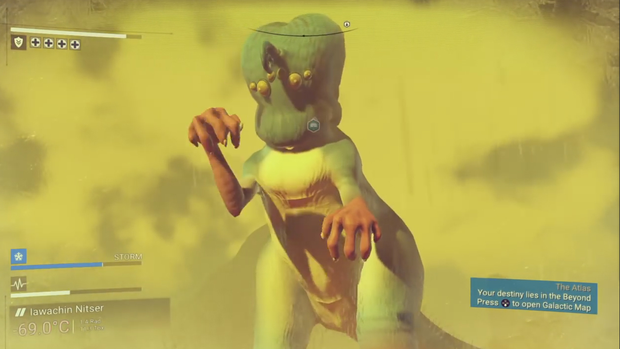 Один из геймеров игры No Man's Sky обнаружил гигантских инопланетян. Их рост достигает до 6 метром, хотя многие заявляют, что на глаз выглядят до 15 метров. Это находка немного успокоила пуканы недовольных геймеров, но так или иначе это не вводит какое либо разнообразие в игру.
