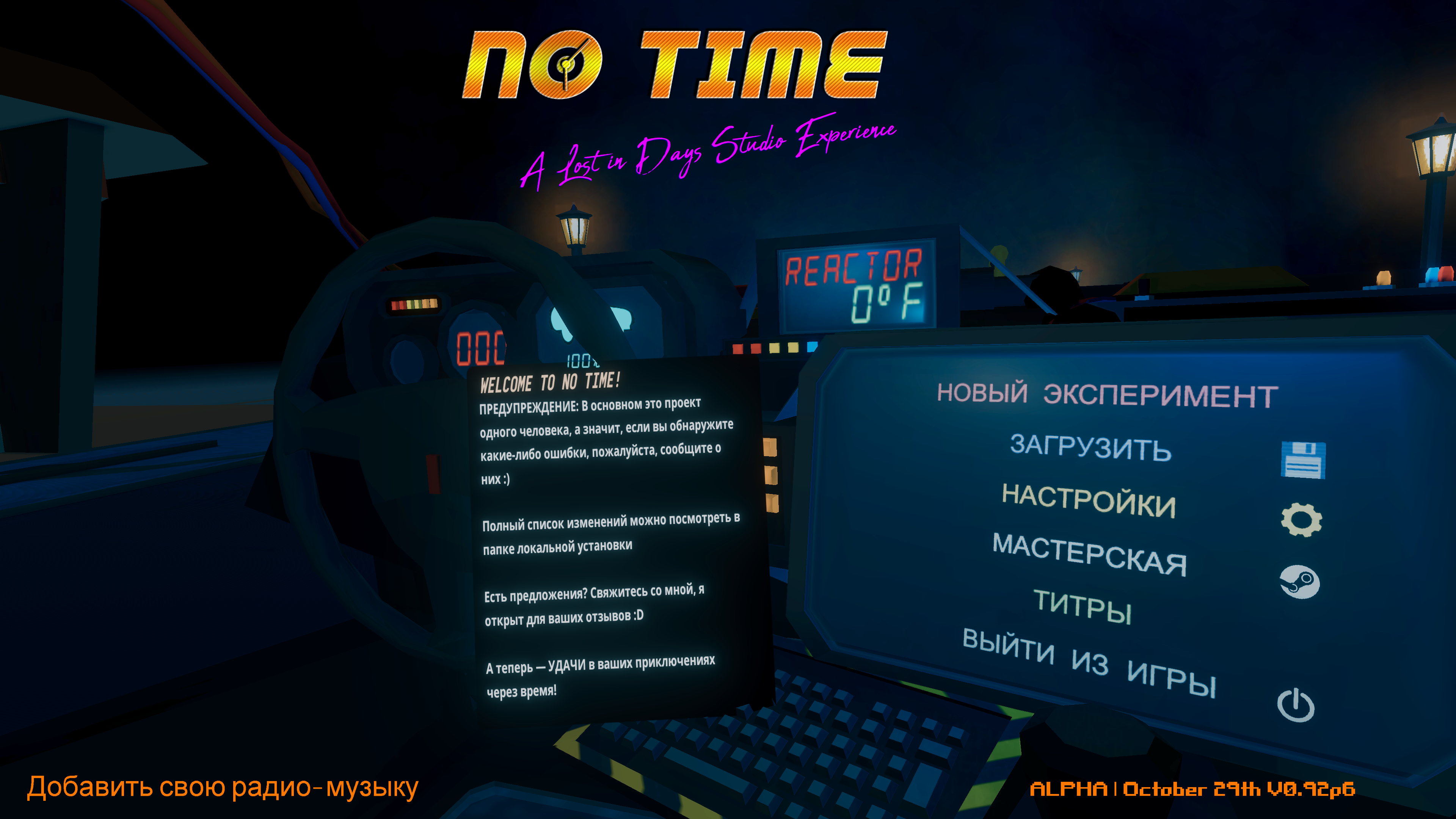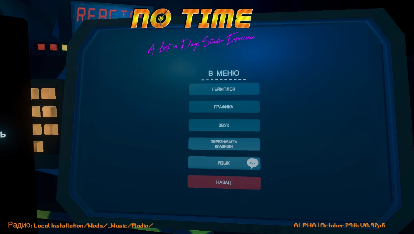 Это комплексный русификатор для игры No Time (актуален для версии игры 0.98 и выше). Модификация обеспечивает полный перевод всего текста игры, включая диалоги (в том числе случайные реплики), содержимое книг, газет и весь интерфейс.