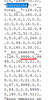 UPD2: Нашёл тут ещё такую занимательную штуку. Пока не разобрался, какие куда числа надо вставлять, но в общем этот пункт позволяет редачить кол-во ресурсов поселения. Если играете какое-то время, можете сравнить со своими ресурсами и редачить конкретное, или просто везде поставить 9999.0 или сколько вам там нужно...
