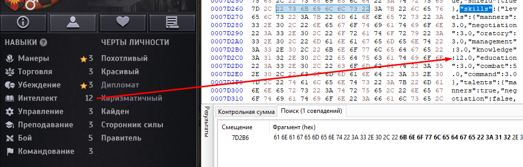 Опять же, бывает что HxD не находит вашего лорда, хотя вы точно всё правильно вписали, попробуйте закрыть и заново открыть файл сохранения, если даже после этого не находит, возможно неправильно записали навык. Касаемо изменения черт личности, прочих баффов и дебаффов и возраста. Где-то точно можно было изменять эти параметры, но сейчас я не могу найти где, а на счёт черт даже не искал т.к. было не нужно. Чуть выше навыков можно найти пункты про облысение, поседение и т.п., их можно отключить. Касаемо конкретно пункта черт личности - не знаю, потыкайте сами, думаю многое найдёте. За сим откланяюсь.