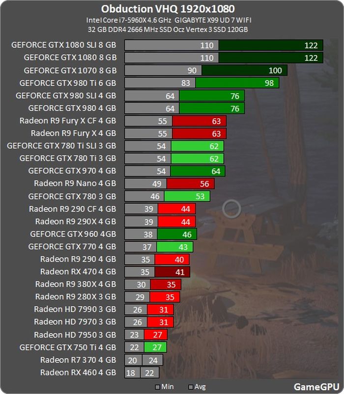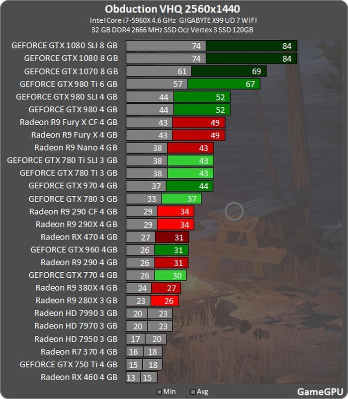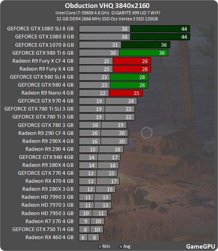 При данных настройках приемлемый показатель FPS показали видеокарты уровня Radeon R9 Nano или GeForce GTX 980. Оптимальными решениями станут видеокарты уровня adeon R9 Fury X или GeForce GTX 980 Ti.