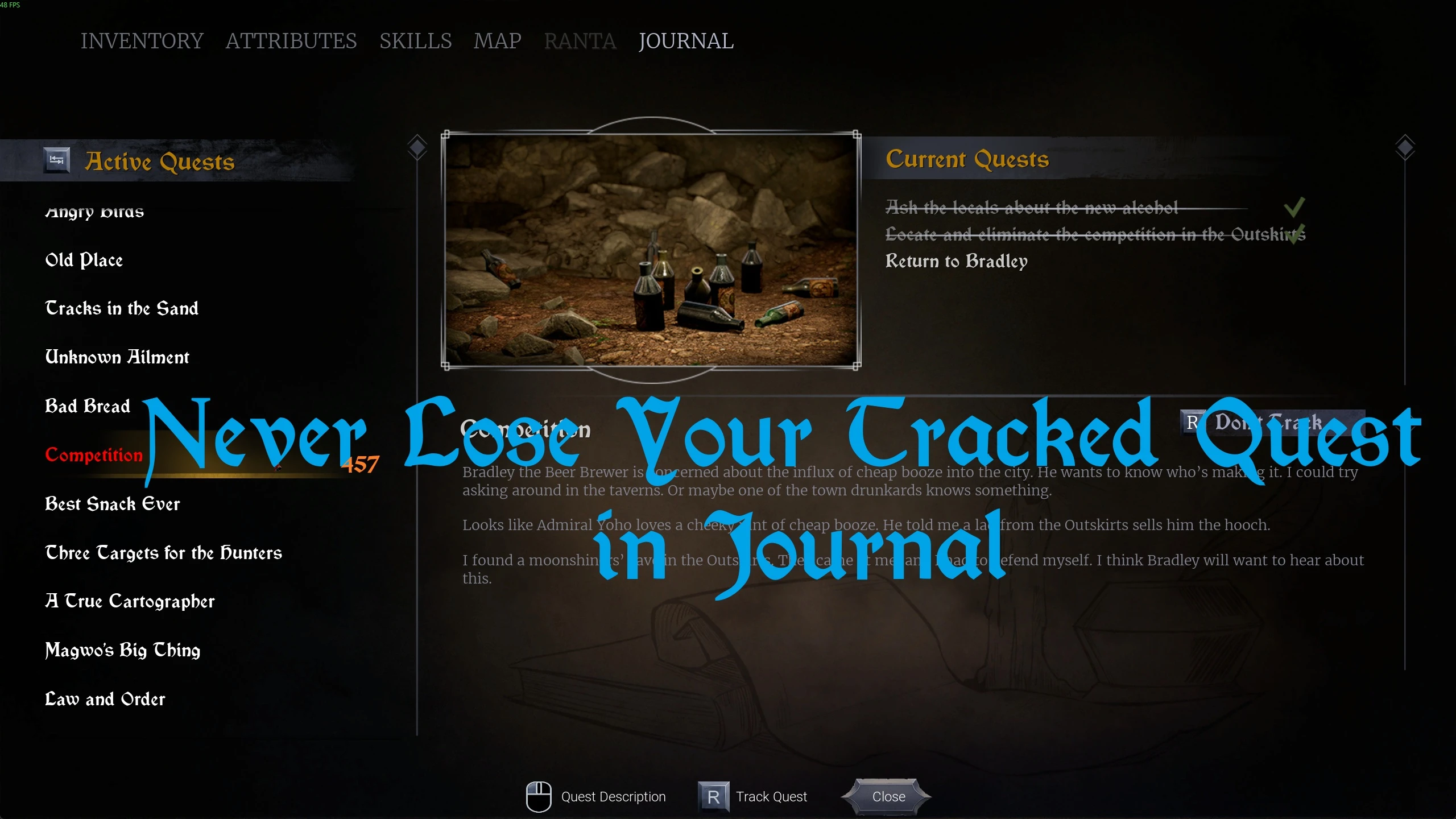 Выделяет ваш текущий отслеживаемый квест красным цветом в меню журнала.