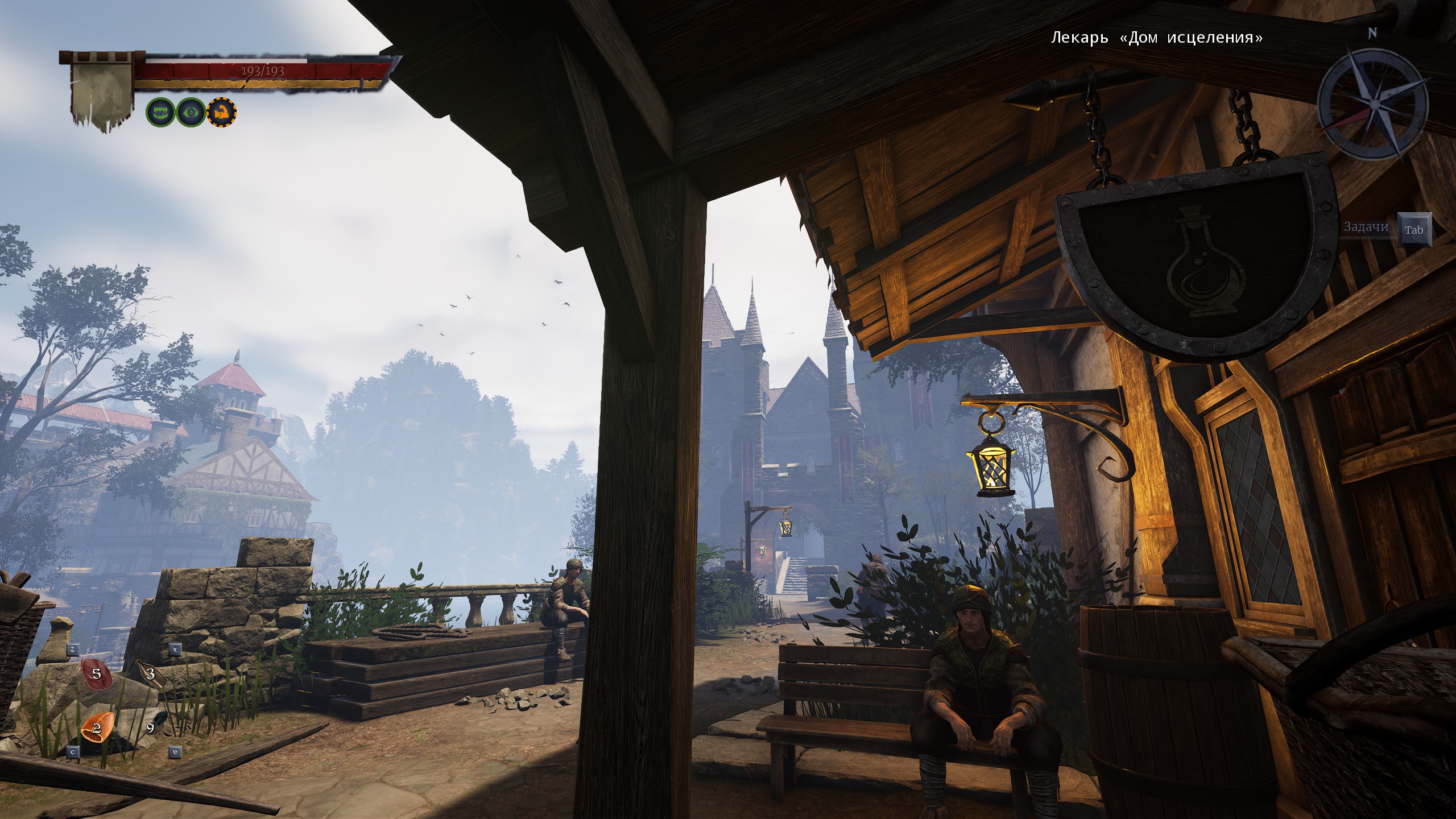 Рыбацкая деревня. Вот в этом месте на дне открытый сундук, в котором лежит Зельце Проницательности +1