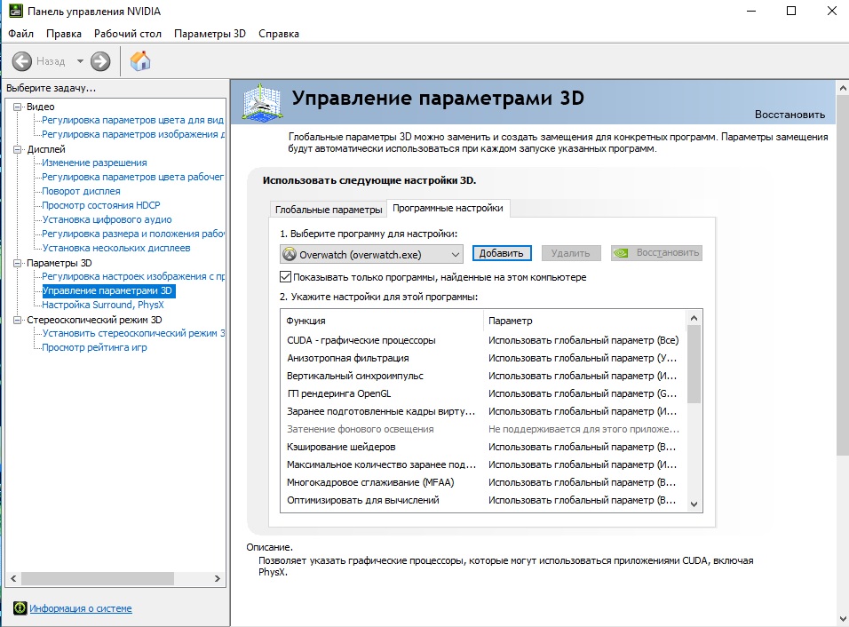 Настройки быстродействия, функция "видеопамять"