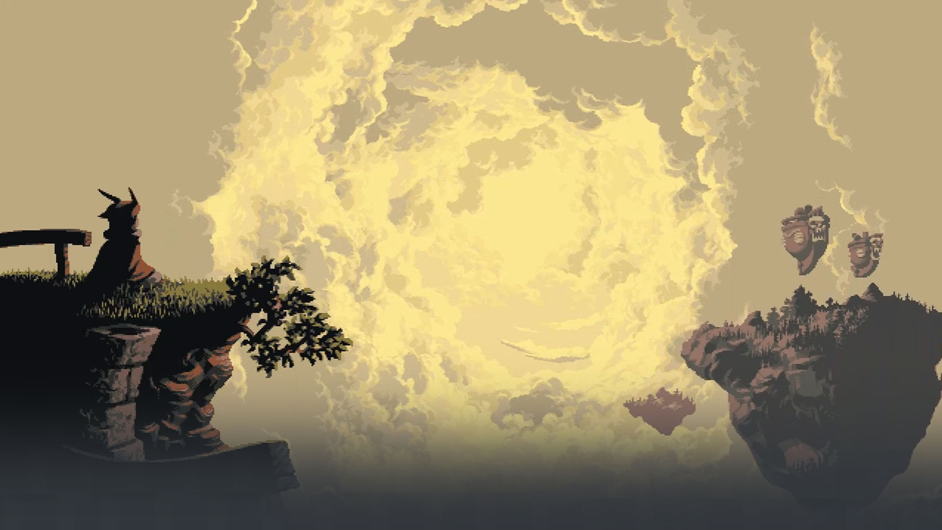 Действительно, кропотливый труд разработчиков и стремление к перфекционизму чувствуются буквально с первых минут игры, когда мы знакомимся в визуальной составляющей. Выдающийся Hi-Bit Pixel-Art дизайн радует игрока на протяжении всей игры и не перестает удивлять буквально до самого финала. Каждый уровень выполнен в особом стиле и хорош по своему, будь то парящие острова в облаках, заснеженные просторы или же вообще мрачное подземелье, не важно, каждая локация здесь обладает персональным шармом, но при этом умудряется не выбиваться из общей стилистики. Отдельные сцены, моменты и локации выглядят особо впечатляюще, так, например, при выходе главного героя в локацию с символическим названием “Cloud Gardens” камера специально отдаляется от главного героя, дабы дать нам насладиться здешними красотами, честно говоря, такие вещи не грех поставить на рабочий стол, конечно, если вам такое искусство по вкусу, а это действительно искусство, без всяких на то скидок и поблажек.