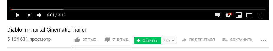 710 тыс. дизлайков под официальным трейлером Diablo Immortal