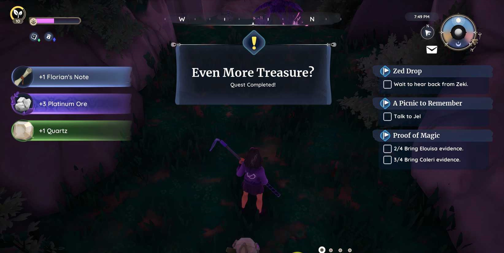 До вашего появления в мире Palia участок принадлежал эксцентричному изобретателю по имени Флориан. Несколько квестов раскрывают историю этого загадочного персонажа. Один из них — задание «Еще больше сокровищ», которое отправляет игрока на поиски клада бывшего владельца.