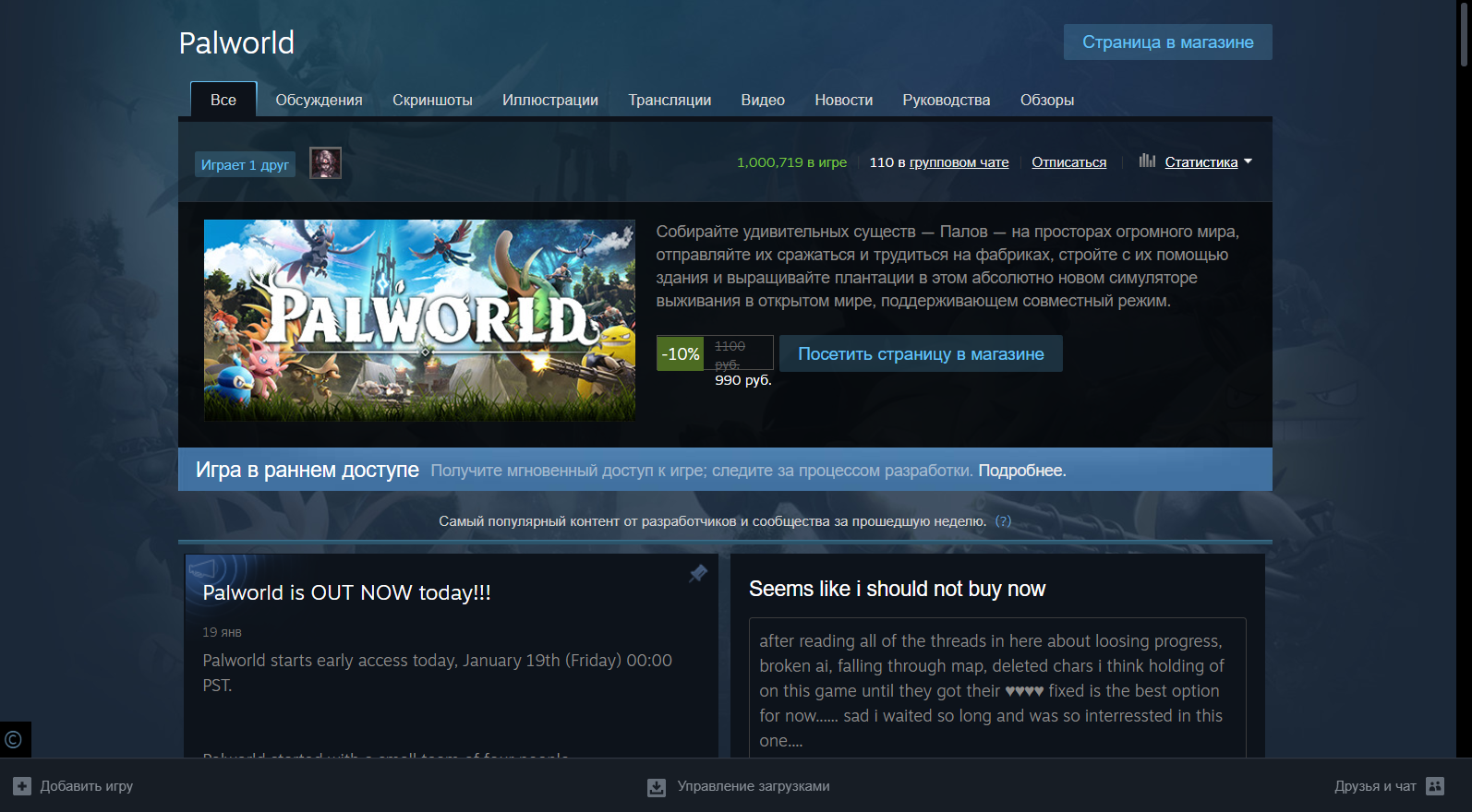 Вскоре после продажи более миллиона копий в течение нескольких часов после запуска Palworld, как сообщили её разработчики, игра утроила свои продажи менее чем за два дня.