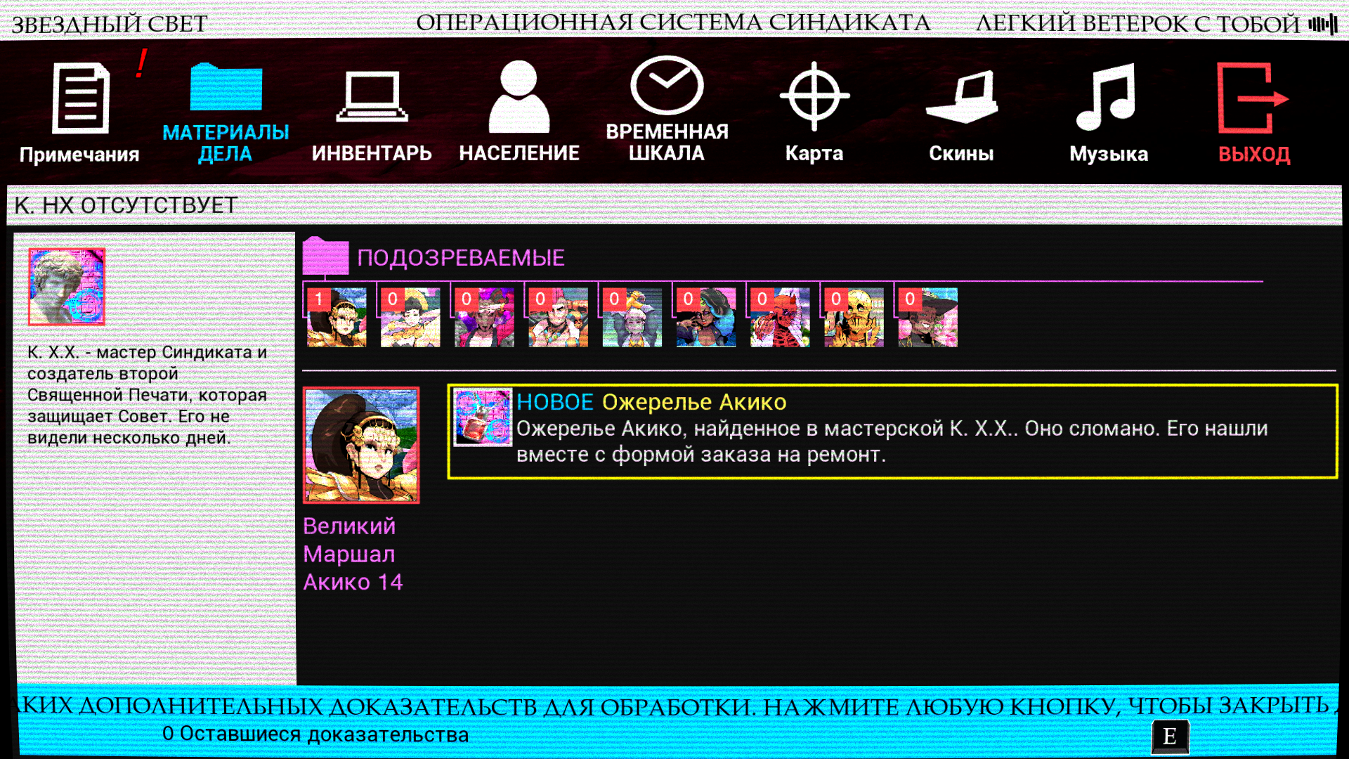 - Полный перевод текста: Переведены все диалоги, описания улик, интерфейс и лор-документы.