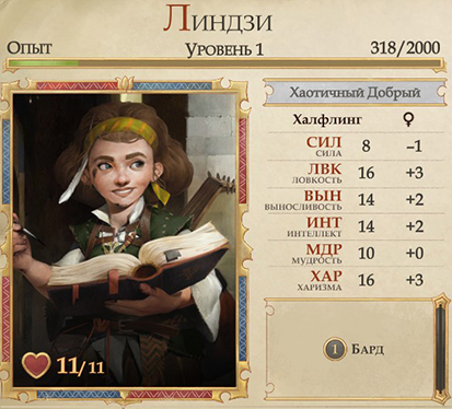 16. БАРД. Харизма +1. Заклинания: Свобода движений, Подавляющее присутствие, Блестящее вдохновение.