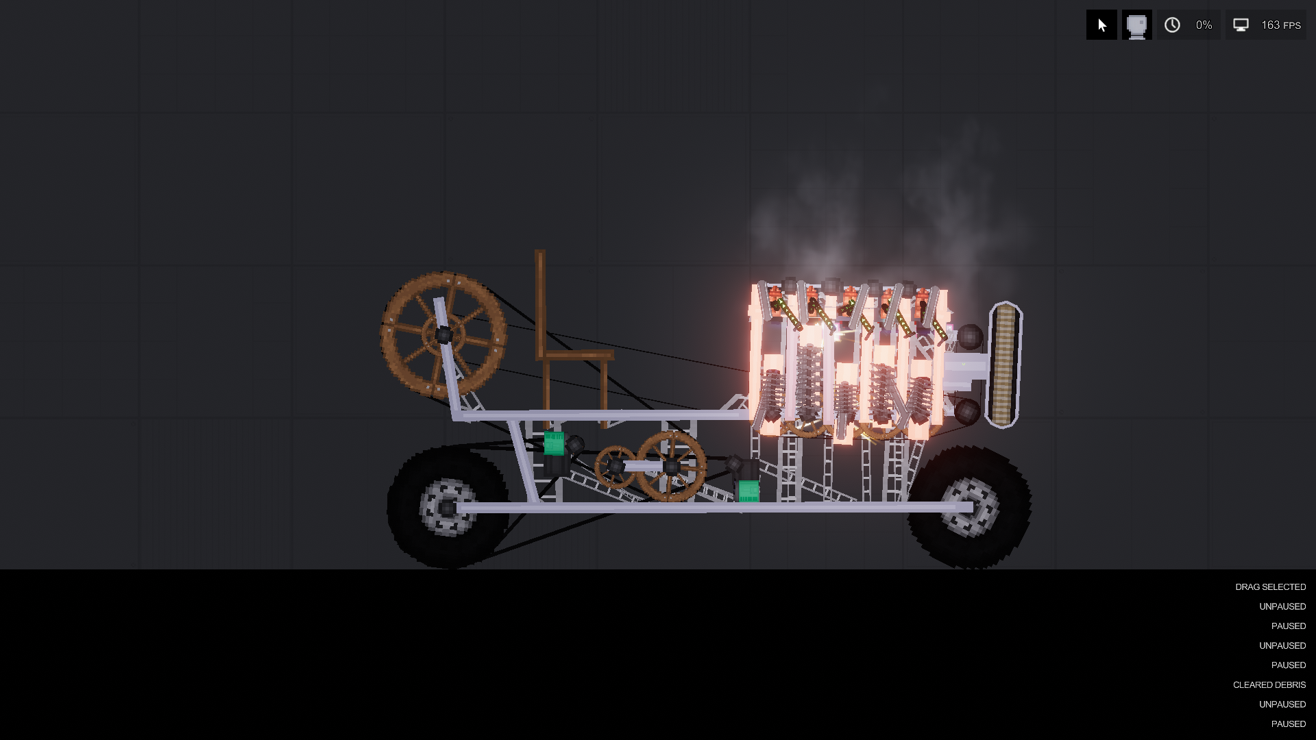 4-цилиндровый рядный рабочий двигатель, из плюсов можно выделить, что он имеет холостые и рабочие обороты, можно размораживать, чуть больше, чем двигатель от автомобиля, но самое главное — это то, что он чуть вибрирует, а не улетает во время работы. С него не выходят пули и т. д., что делает его безопасным и особенный звук работы, при этом же он мощный. из нюансов — внешка плохо проработана.