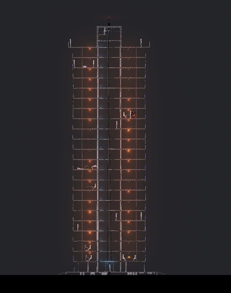Многоэтажный дом с двадцати двумя этажами с балконами. Разрушаемый есть лифт, лифт немного может криво ехать, но в стены не врезается.