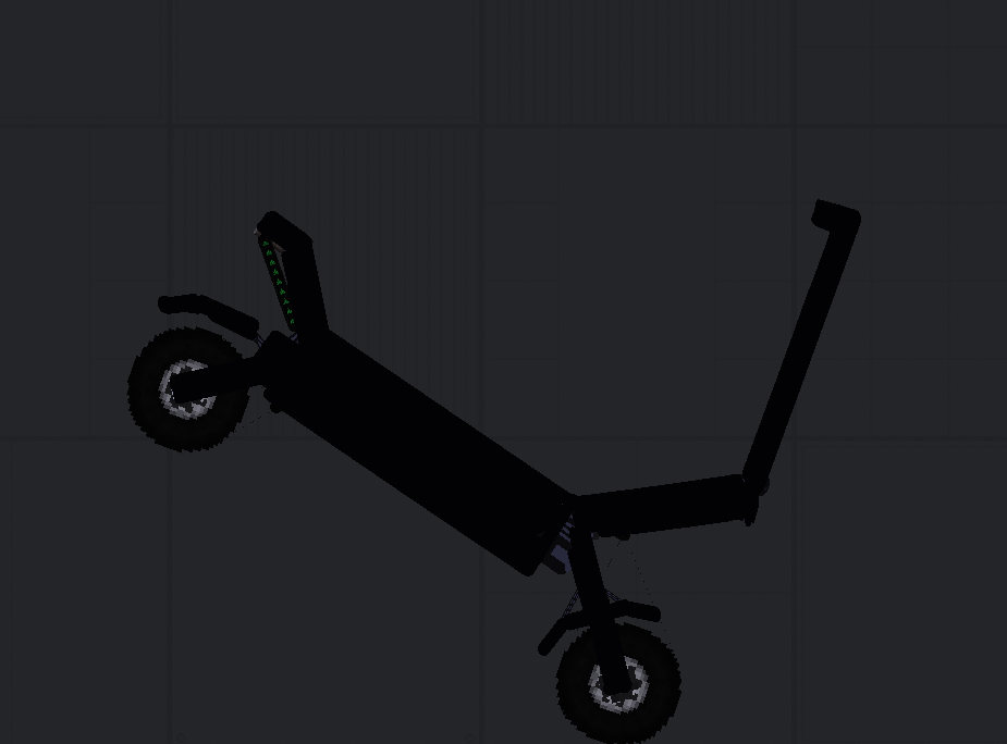Полностью чёрный электросамокат Dualtron Victory Luxury 2024, сделанный мною на версии 1.27.5, электросамокат имеет упругую подвеску, реализм и неплохой внешний вид, ну и как же без скорости, настоящий самокат едет 80 километров в час, и этот тоже не мало быстрый, у него полный привод, есть задний стоп или же любой другой как вы захотите фонарь, из минусов только то, что за счет того что он слишком быстрый, человек стоя на нем вероятнее всего упадет на спину, чтобы это предотвратить, можно попробовать немного снизить обороты у заднего ротора, который вы найдете по ремню который привязан через колесо к ротору.