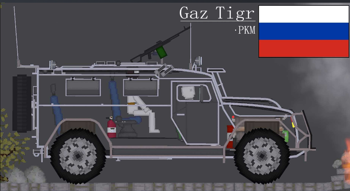 Данный файл добавит в ваш мир боевую машину газ-тигр. Из вооружения 7.62 пулемет. Данная машина может быть использована для разведки или переброски десанта.