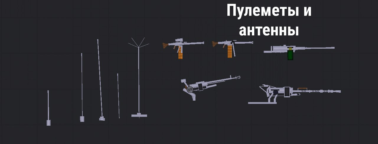 - 5 пулеметов - MG-42 две версии, М2, ДШК, КПВТ;