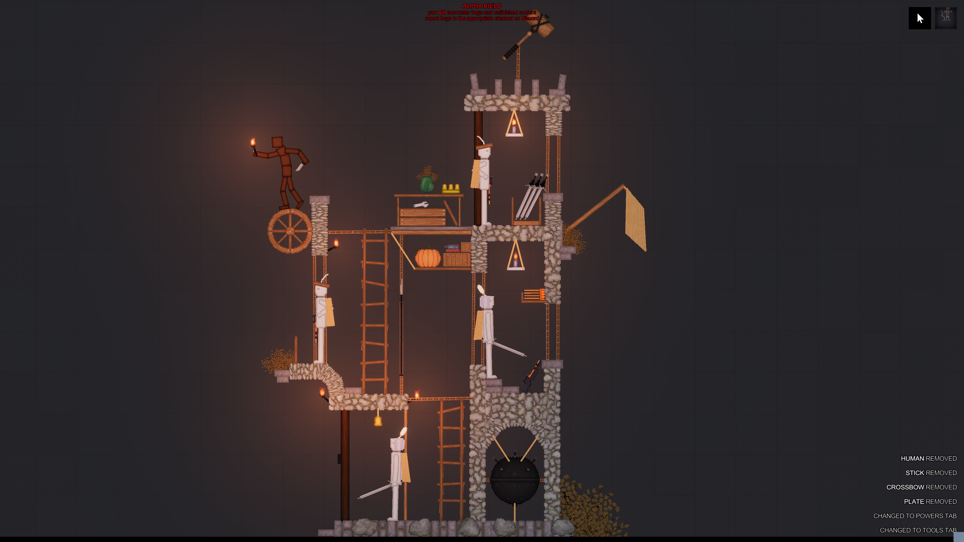 Это оборонительная башня из 3 этажей, с юнитами. В башне есть бомба и запасы оружия. По всей башне расположены факелы и свечи, а поэтому она может загореться.