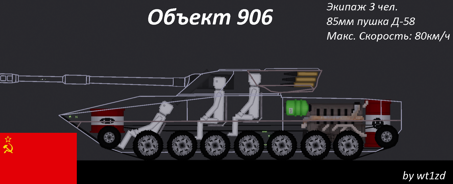 Объект 906 (ПТ-85) - советский опытный лёгкий танк с 85мм пушкой Д-58, экипажем из 3 человек, и скоростью 80км/ч