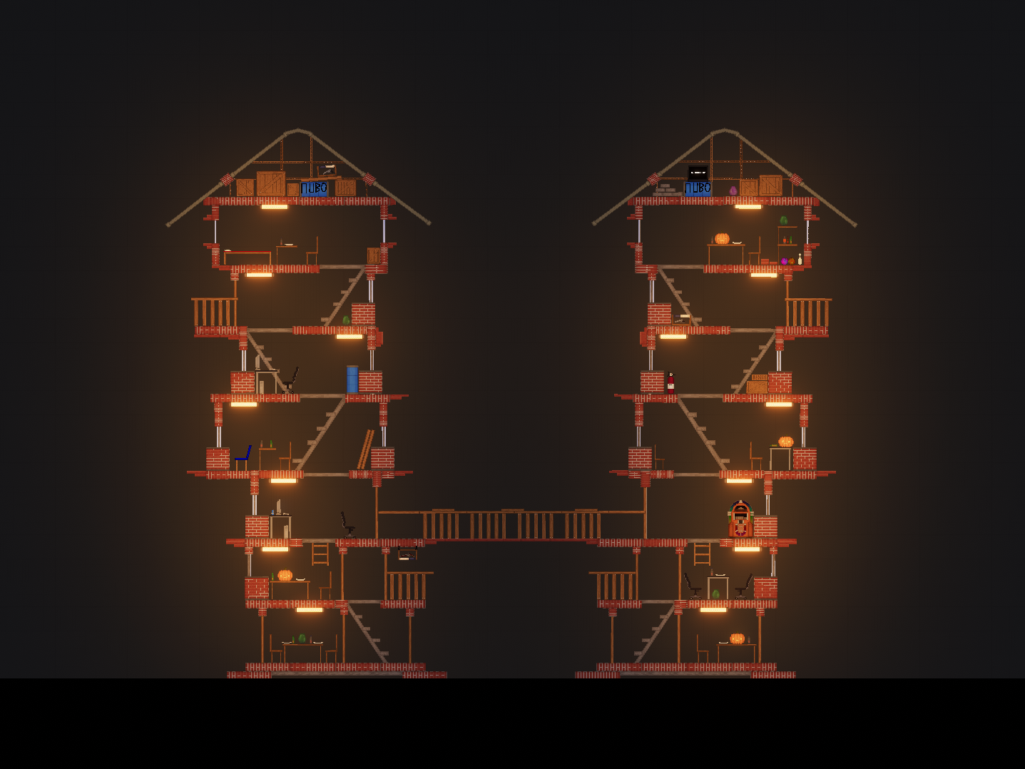 Данная постройка представляет из себя семиэтажное соединённое разрушаемое здание.
