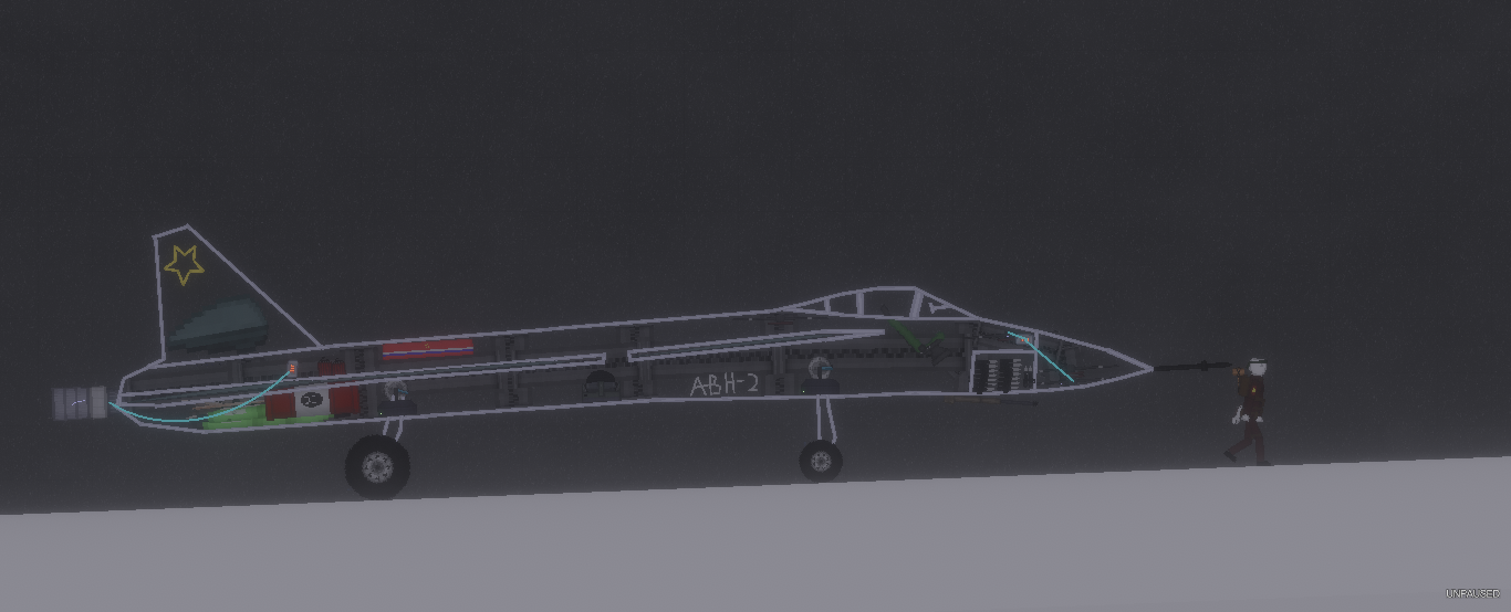 Данный истребитель был назван АВН (Атака в небе), его вид был скопирован с вида СУ-47. Он должен был выполнять задачи перехвата ВВС противника, но не будет выпущен Данный истребитель был назван АВН (Атака в небе), его вид был скопирован с вида СУ-47. Он должен был выполнять задачи перехвата ВВС противника, но не будет выпущен даже в недоделанном состоянии. Из за сильных метелей и плохого маневрирования, проект был остановлен. Данный истребитель будет служить одной из основ следующим образцам. Также из-за больших разгоняемых скоростей, техника долго тормозила и ударялась об поверхность земли. В истребителе: 30m Пушка со снарядами (декоративными), установленные на колеса противо возгорания механизмы. Двигатель с запалом топлива, руль для управление и крылья, а также мелкие детали что есть в истребителях.