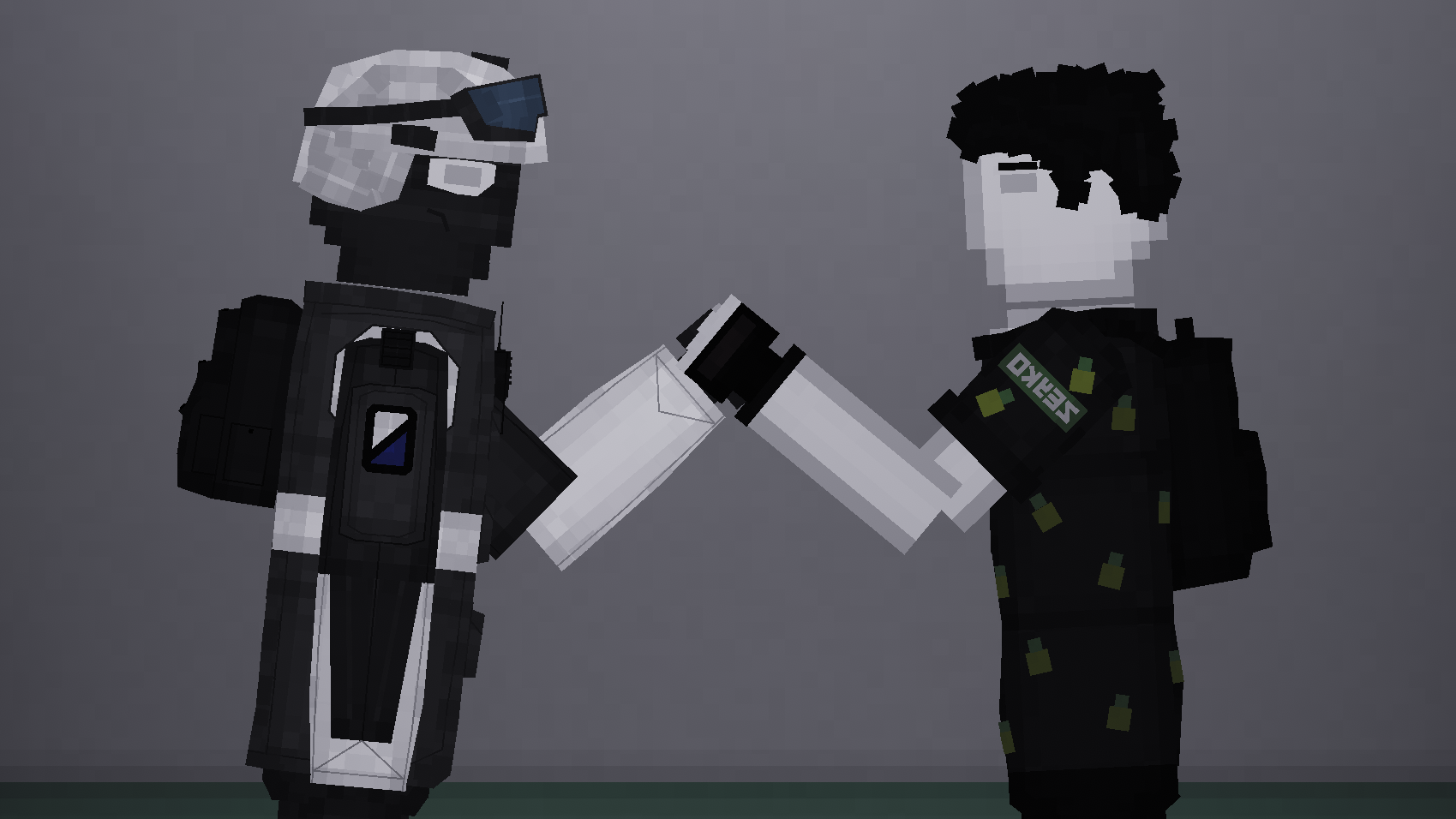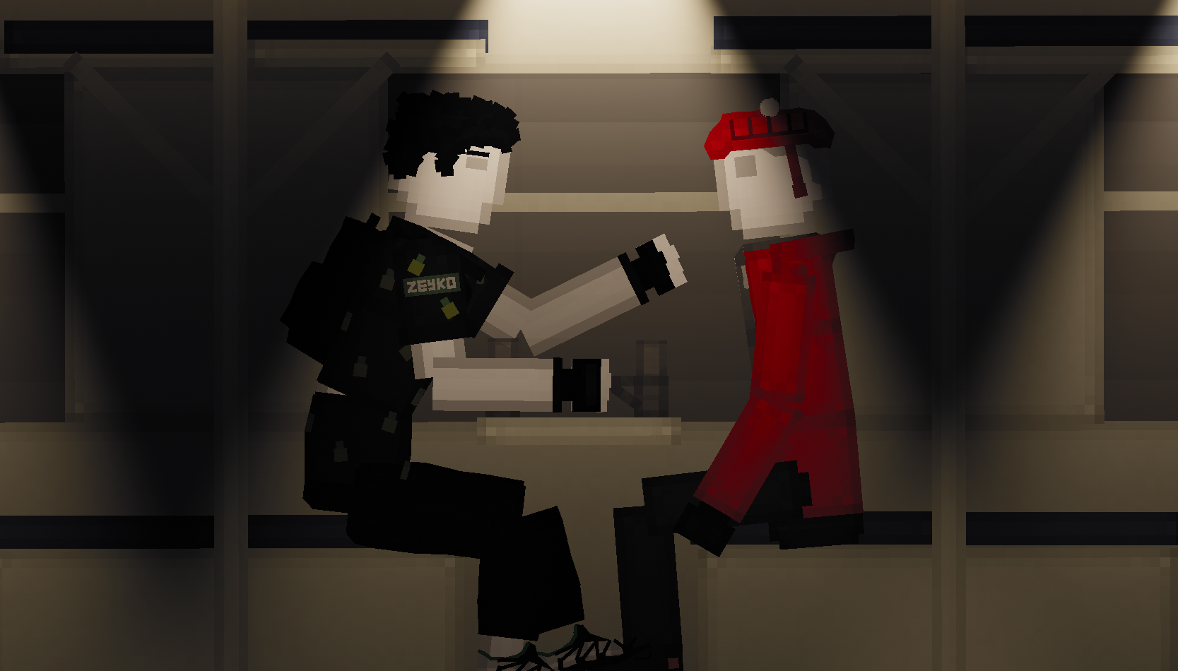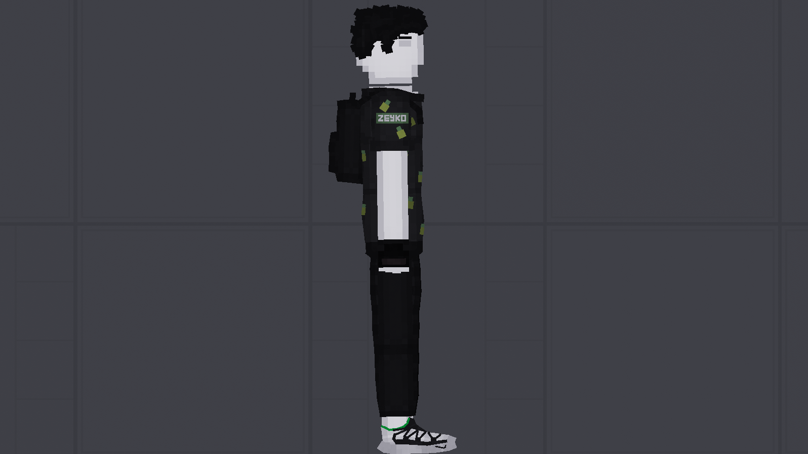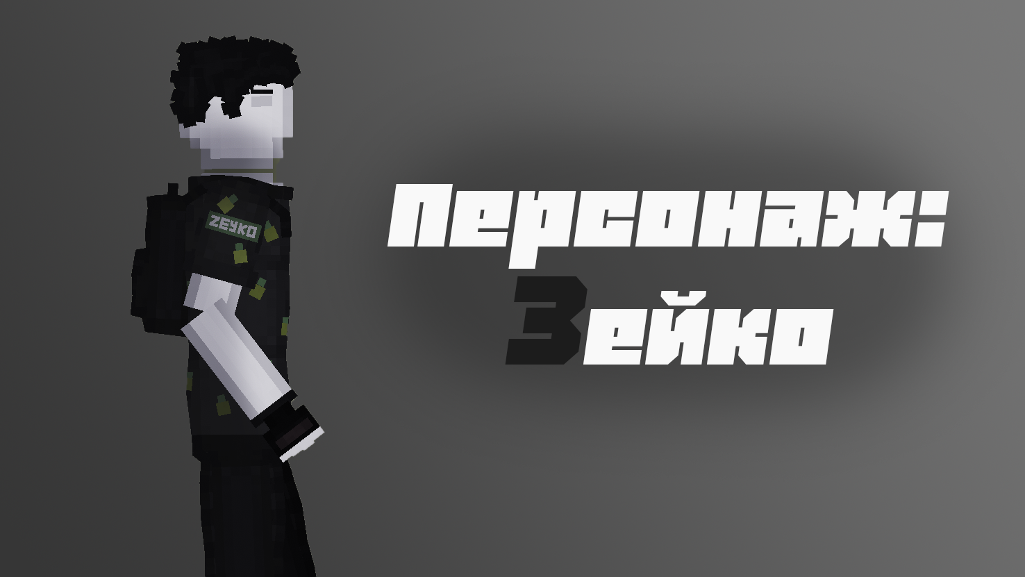 Зейко - строит самолеты, танки и гражданскую технику в People playground. Персонаж одет в белые кроссовки, черные штаны и темную рубашку с желто-зеленым узором, также на плече у персонажа имеется нашивка с его ником, а за спиной имеется рюкзак.