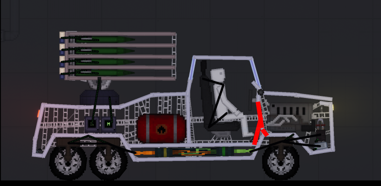 Реактивная система залпового огня, сделанная мной для баланса вселенной. Она придумана и у нее нет аналогов из реальной жизни, но, возможно, я делал ее немного опираясь на "Катюшу" (сам уже не помню). Да, возможно она уродливая, некрасивая, все прочее и я не умею строить, но я ее выложил просто ради рофла, может кому-то зайдет и будет использовать. Ракеты и система КПП взяты из разных построек разных людей (если читаете - спасибо вам за такие прикольные штуки). УВН установки с ракетами - 35°, имеются 4 ракеты, дальность поражения - +-1050 метров, зона поражения - +-50 метров. Лучше всего запускать ракеты залпами 1 и 3, 2 и 4. Двигатель, топливный бак и ракеты взрывоопасны.