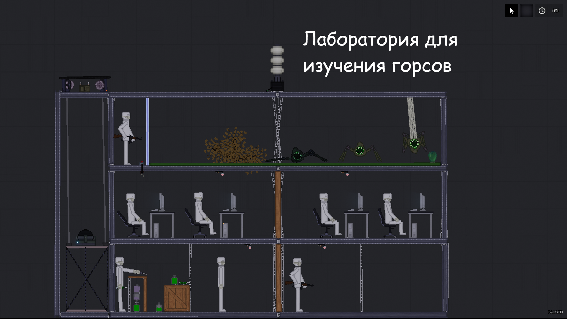 На первом этаже лаборатории находится мини склад и ученый, который делает из крови горса кислоту. На втором этаже учёные работают за компьютерами в офисной обстановке. Третий этаж - место содержания горсов. Там есть кнопка тревоги, на случай если выберутся горсы. Она включает мигающие красные лампочки и тревогу. Все эти этажи соединяет рабочий лифт. Здание полностью разрушаемое и нет зафриженных частей (К которым применялось freeze).