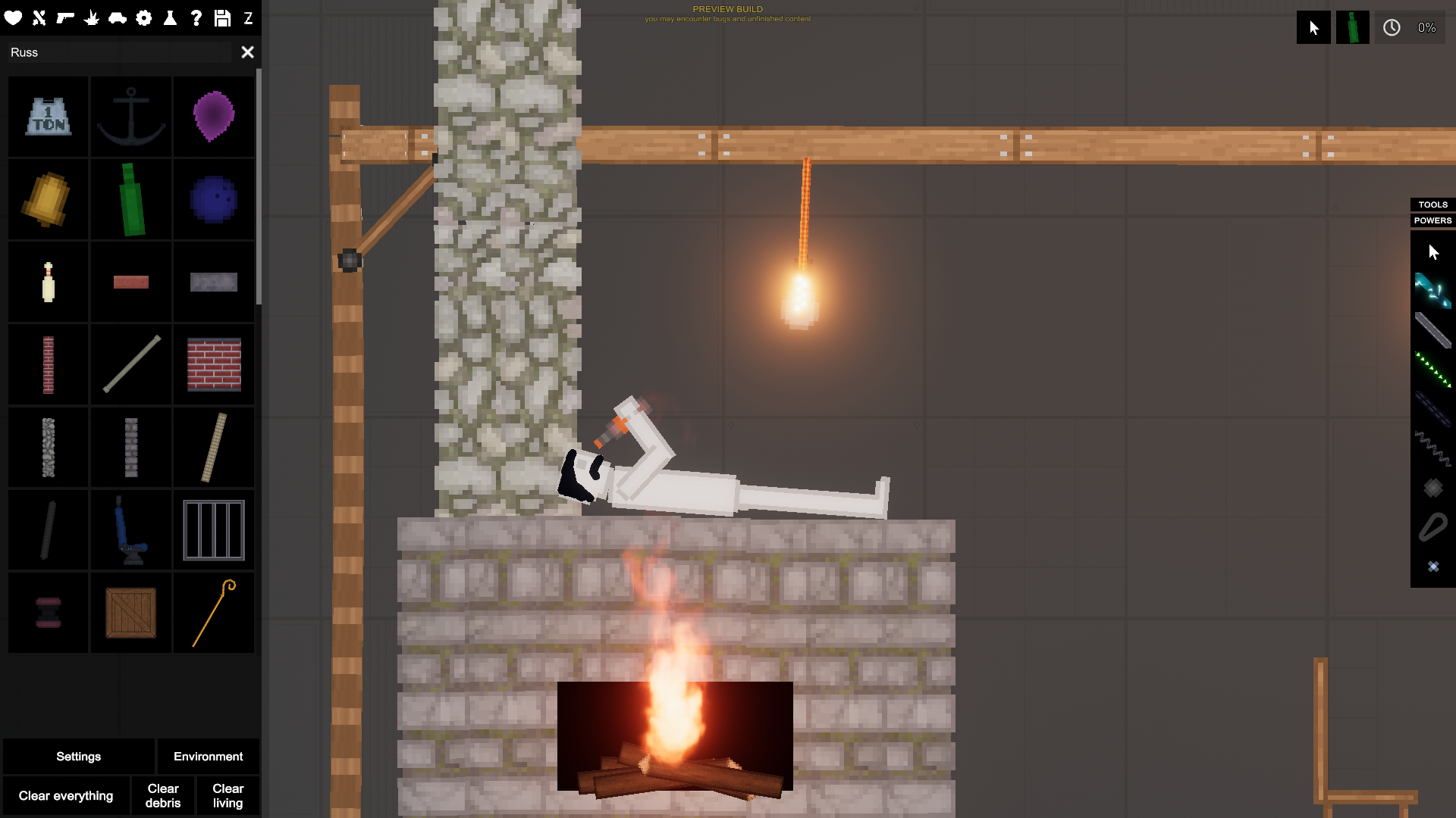 Этот дом буквально стоит на соплях. Когда его ставишь у него дёргается стенка. Её просто подержите курсором и она остановится. И из за того что дом на соплях достаточно гранаты у стены чтобы он почти полностью сломался. Самое прочное место печка с трубой.