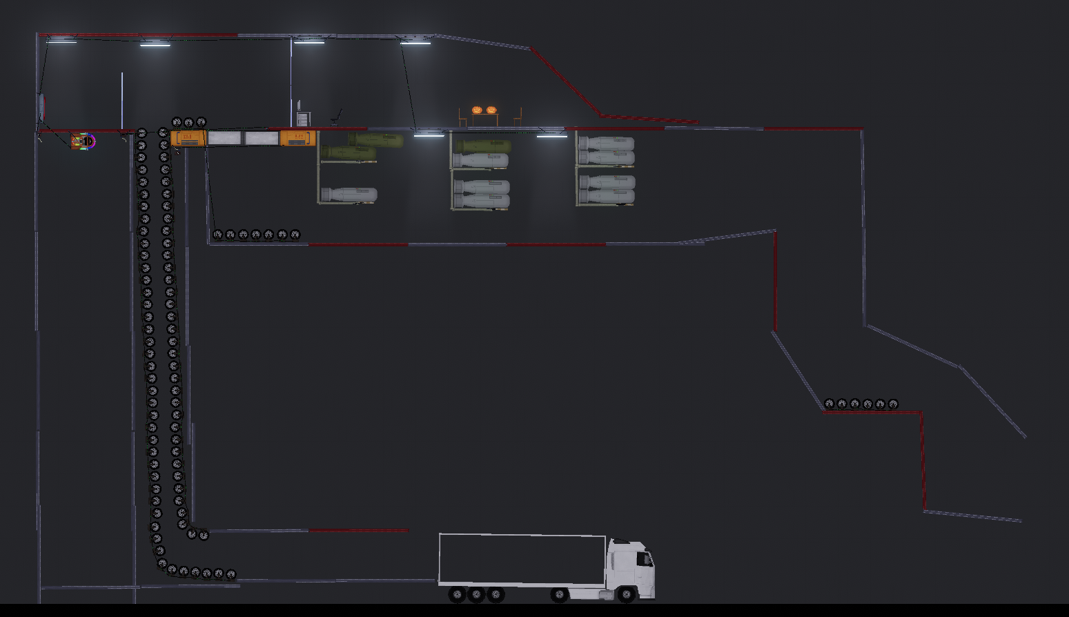 Сделал средний склад. Есть отправка товарка,сортировка, "Мини-офис" и комната управления. Желательно играть на большой карте!