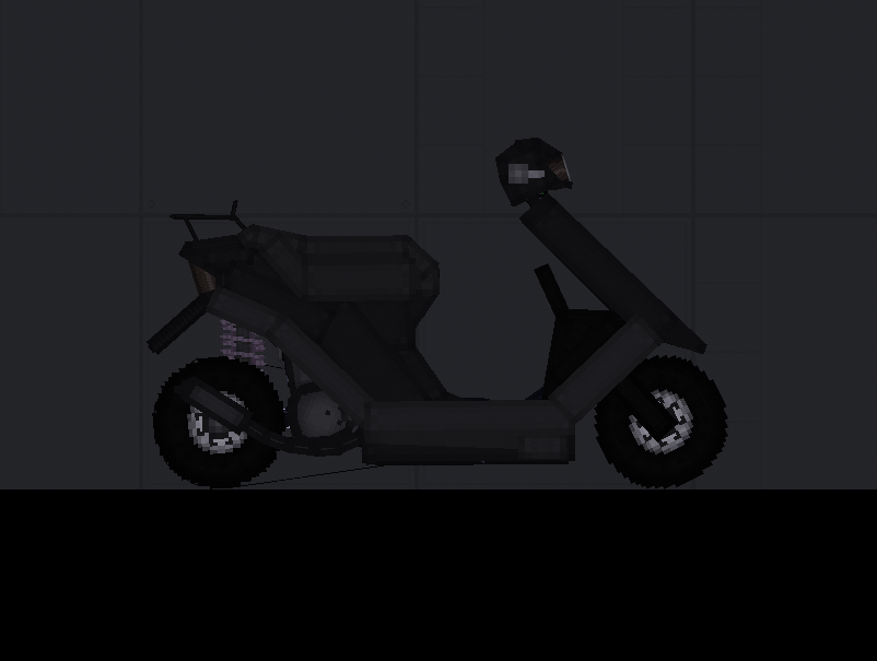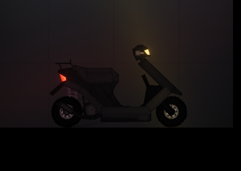 Делал что-то похожее на Dio 27. В нем установлен очень маленький 2-тактный реальный двигатель, есть как холостые, так и рабочие обороты. Для запуска двигателя предусмотрено 2 способа: стартер и аналог кикстартера (провернуть колесо против часовой стрелки). Анимированы ручка газа и тормоза, есть передний и задний свет, а также задний амортизатор. Сам скутер довольно маленький, как и в реальности.