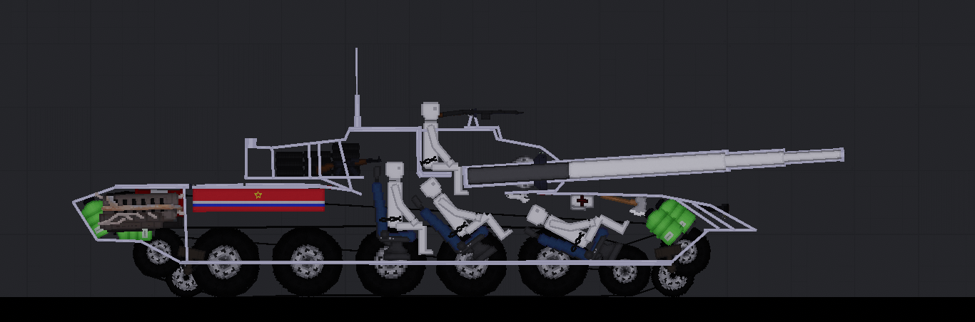 Декор. вещи в танке: Аптечка, топливо в баках, топор, автомат АК рядом с боеприпасами для танка на случай поражения танка, двигатель, взрывчатка, экипаж, передняя фара, флаг государства и т. д.