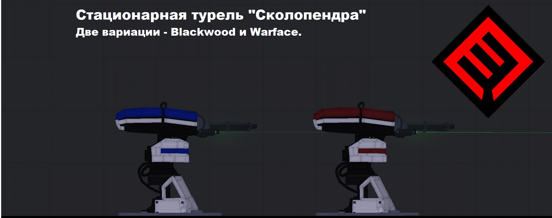 Стационарная турель "Сколопендра" - высокоточная стационарная турель среднего радиуса поражения, стреляющая исключительно в живые цели: люди, военные. Была разработана корпорацией Blackwood для защиты филиала Mediateck от Warface.