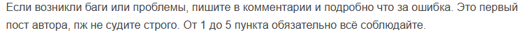 Если возникли баги или проблемы, пишите в комментарии и подробно что за ошибка. Это первый пост автора, пж не судите строго. От 1 до 5 пункта обязательно всё соблюдайте.