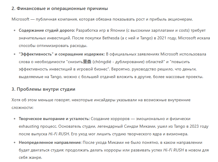 Как я уже сказал- ничего просто так не бывает. И если на то пошло, какие их заслуги? Посредственный Ивл визин ? Упоротый , много ожидаемый, а потом хрен пойми что Ghostwire? Т.е. если-бы они делали чисто СЛЭШЕРЫ под аля Хифу-раш, то тогда может и не было проблемы , а так создали 4 ИГРЫ за все время (а это около 10 лет) и чему-то тут удивляться. Ну и от ОТЦА Резидента ожидалось что-то (серьёзней), а в итоге видимо прощается шиза из-за Гениальности только одному ускоглазому -_- .