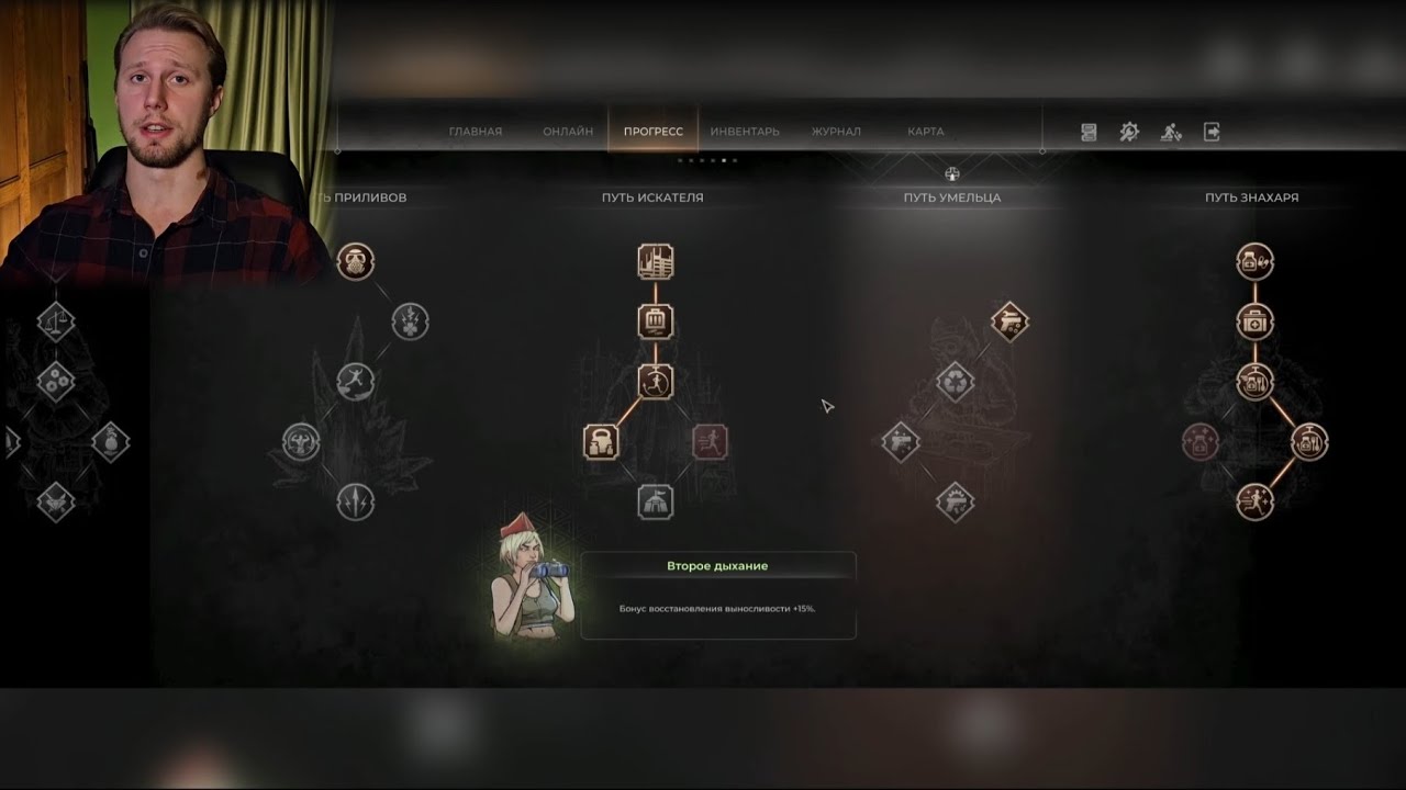 Вы узнаете, как с помощью «пути знахаря» повысить мобильность и живучесть героя, почему «путь искателя» фактически обязателен для регулярных вылазок и эффективного фарма, а также каким образом грамотно сочетать бонусы к запасу выносливости с увеличением максимального переносимого груза.
