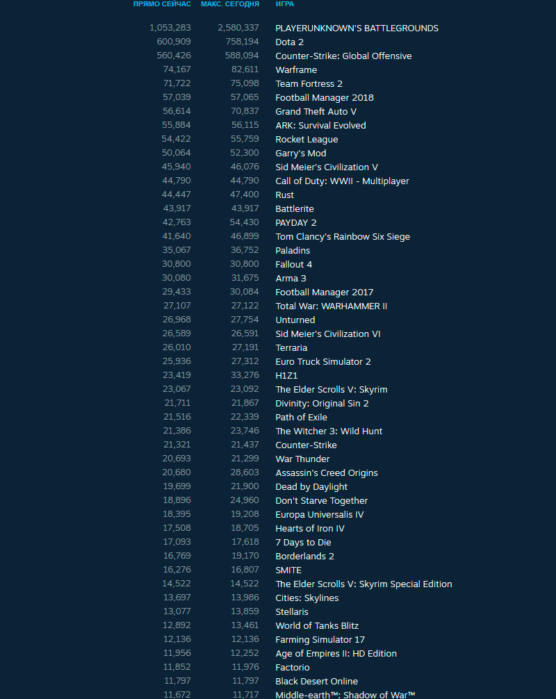 PUBG лидерство вообще отдавать не собирается. Когда новая карта релизнется и пофиксят баги с оптимизацией ожидайте подскок под 3.5 ляма онлайн.
