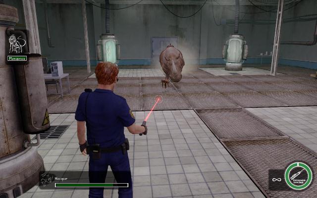 Здесь безумный ученый решает избавиться от носорога при помощи управляемой обезьянки. Но тут на доктора нападает кошка и его лазерная указка переходит к вам. Ну, понеслась!