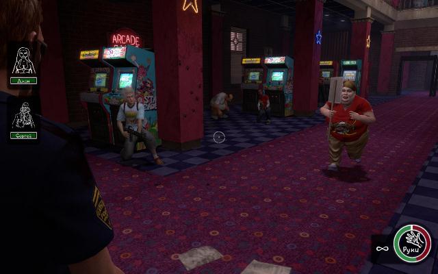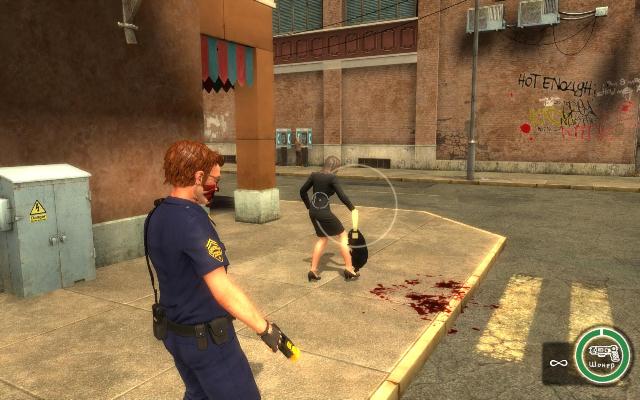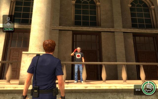 Но похоже ваши действия не по нраву обществу защиты бомжей. А посему они врываются в здание и начинают мочить копов.