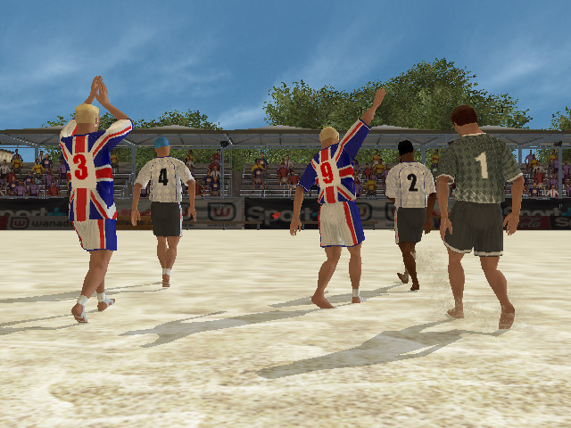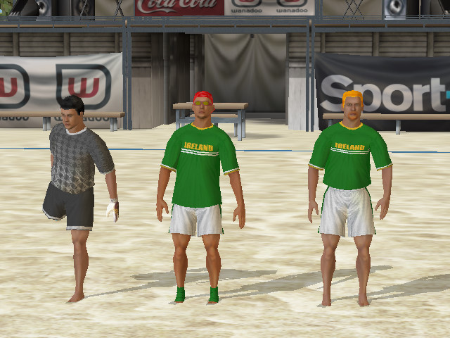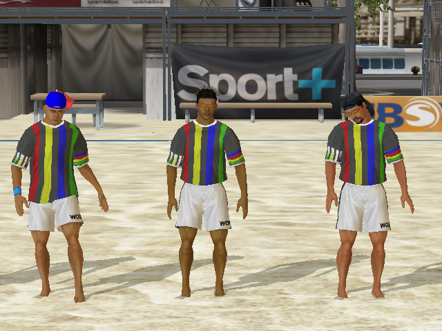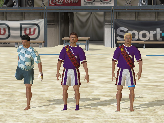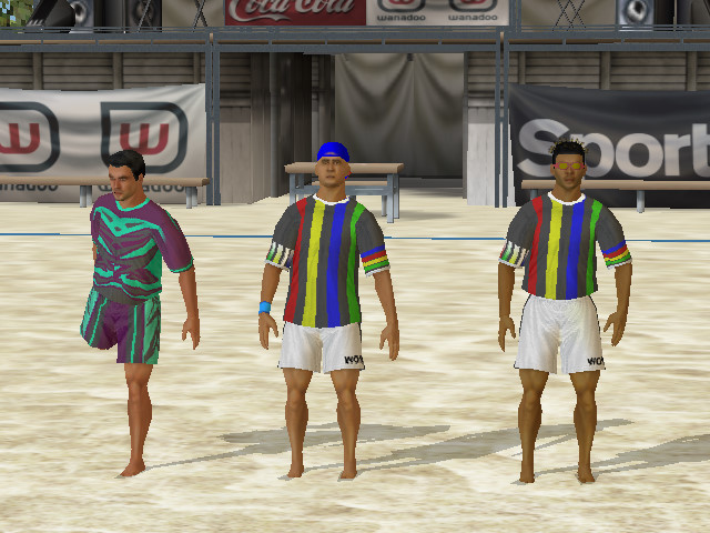 А сейчас слово о разных версиях игры, в международной версии в каждом городе свой комментатор. В Марселе комментарии на французском, В Рио на португальском, в Бангкоке на тайском, а в Лос Анжелесе на английском. В русской версии все фразы комментатора во всех городах озвучены на русском. И есть один «недочёт» в игре пляж в Лос Анжелесе в международной версии назван VeniceBeach, а в нашей он Побережье Венеции (где у геймера изначальная ассоциация с Италией). Также в игре представлены 32 национальные сборные и 2 сборные звёзд.